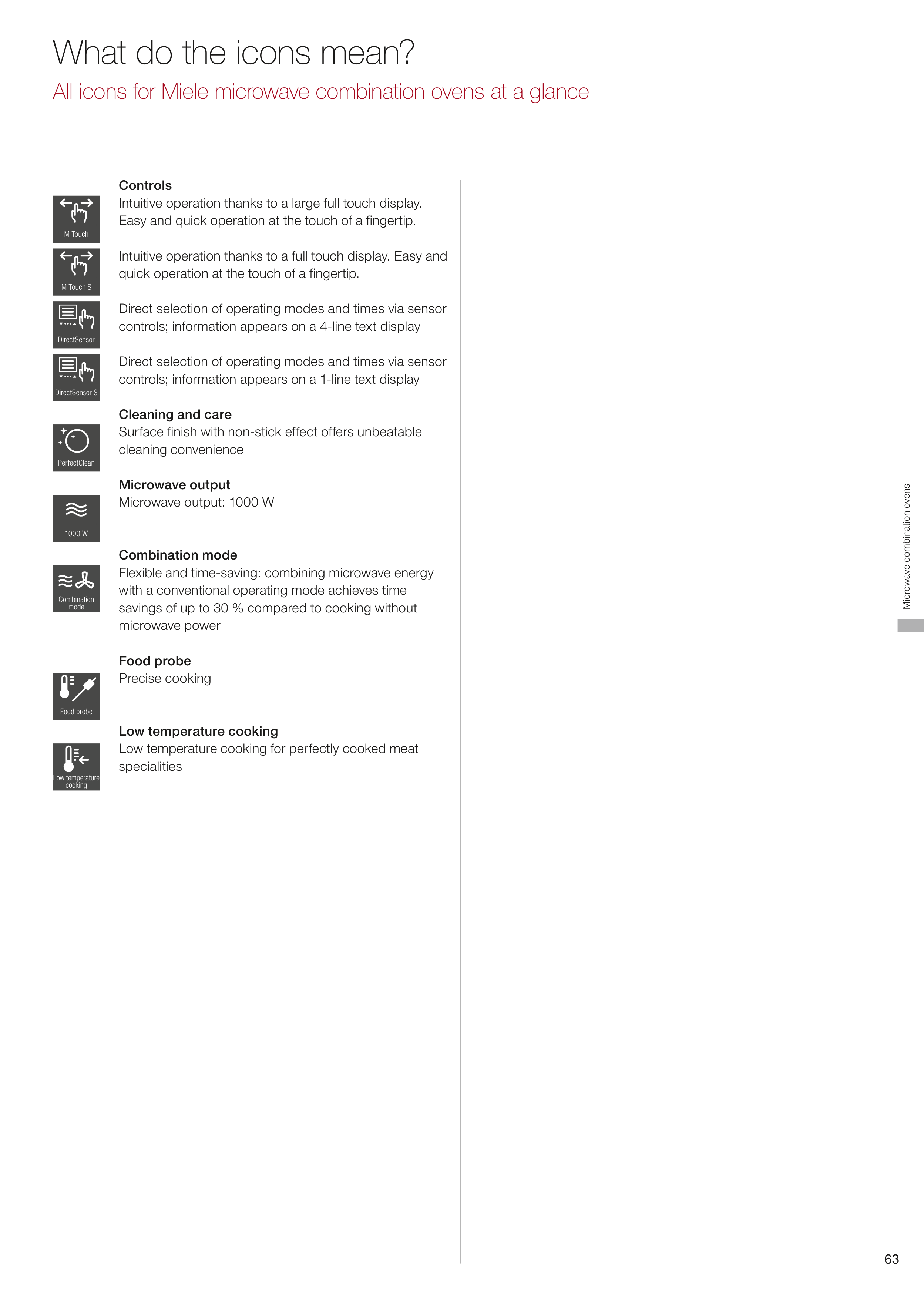 All icons for Miele microwave combination ovens at a glance