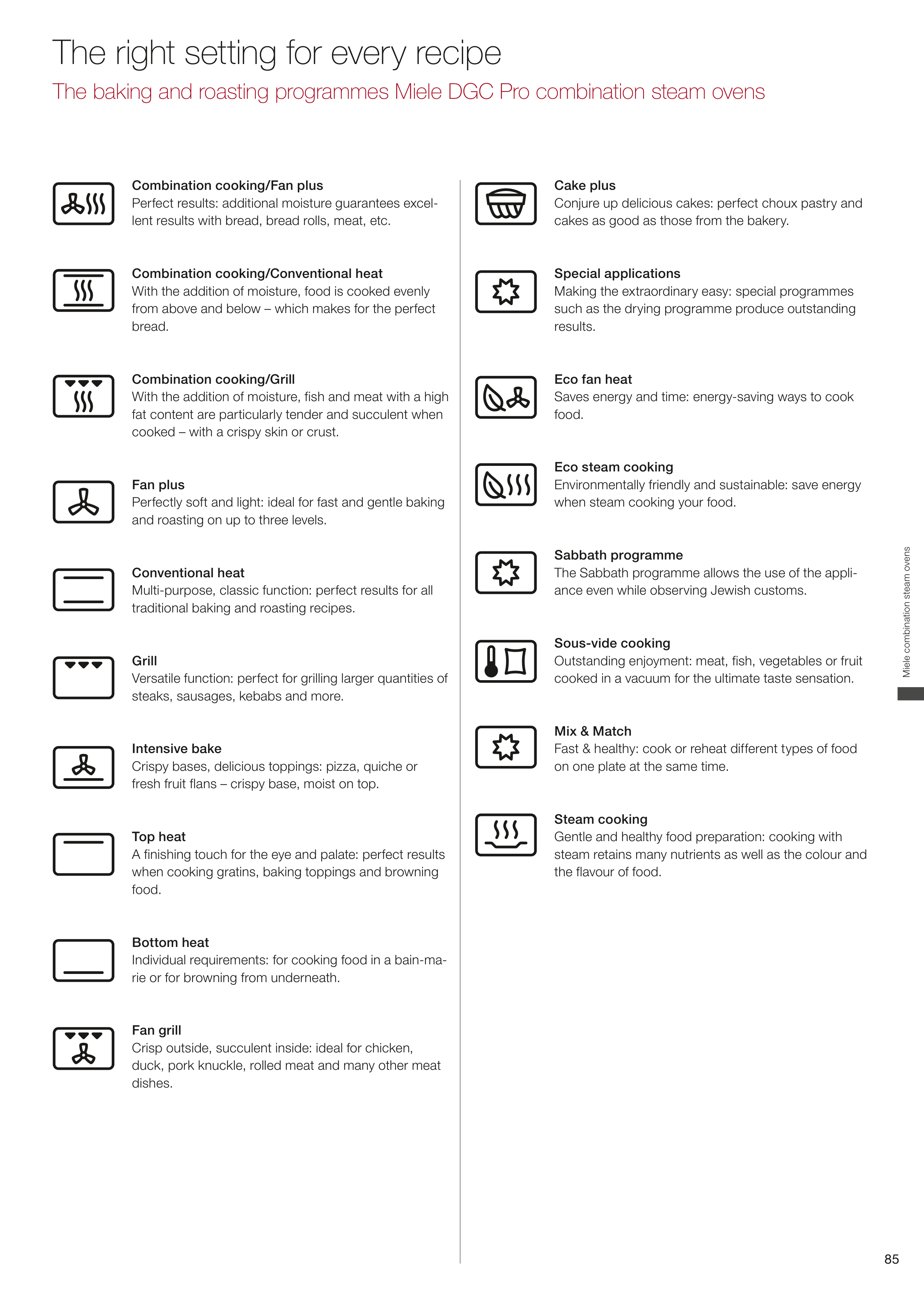 The baking and roasting programmes Miele DGC Pro combination steam ovens