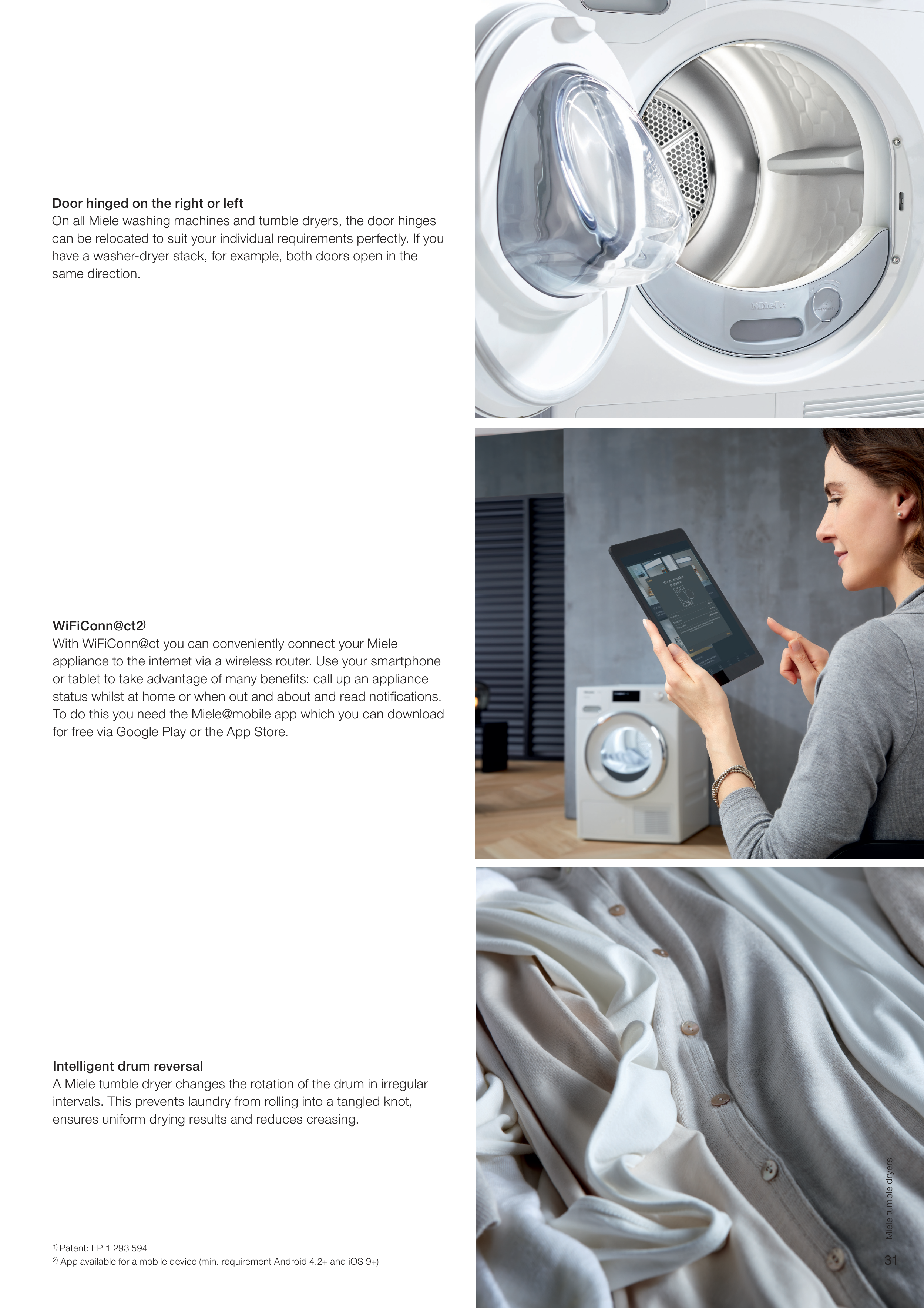 On all Miele washing machines and tumble dryers, the door hinges