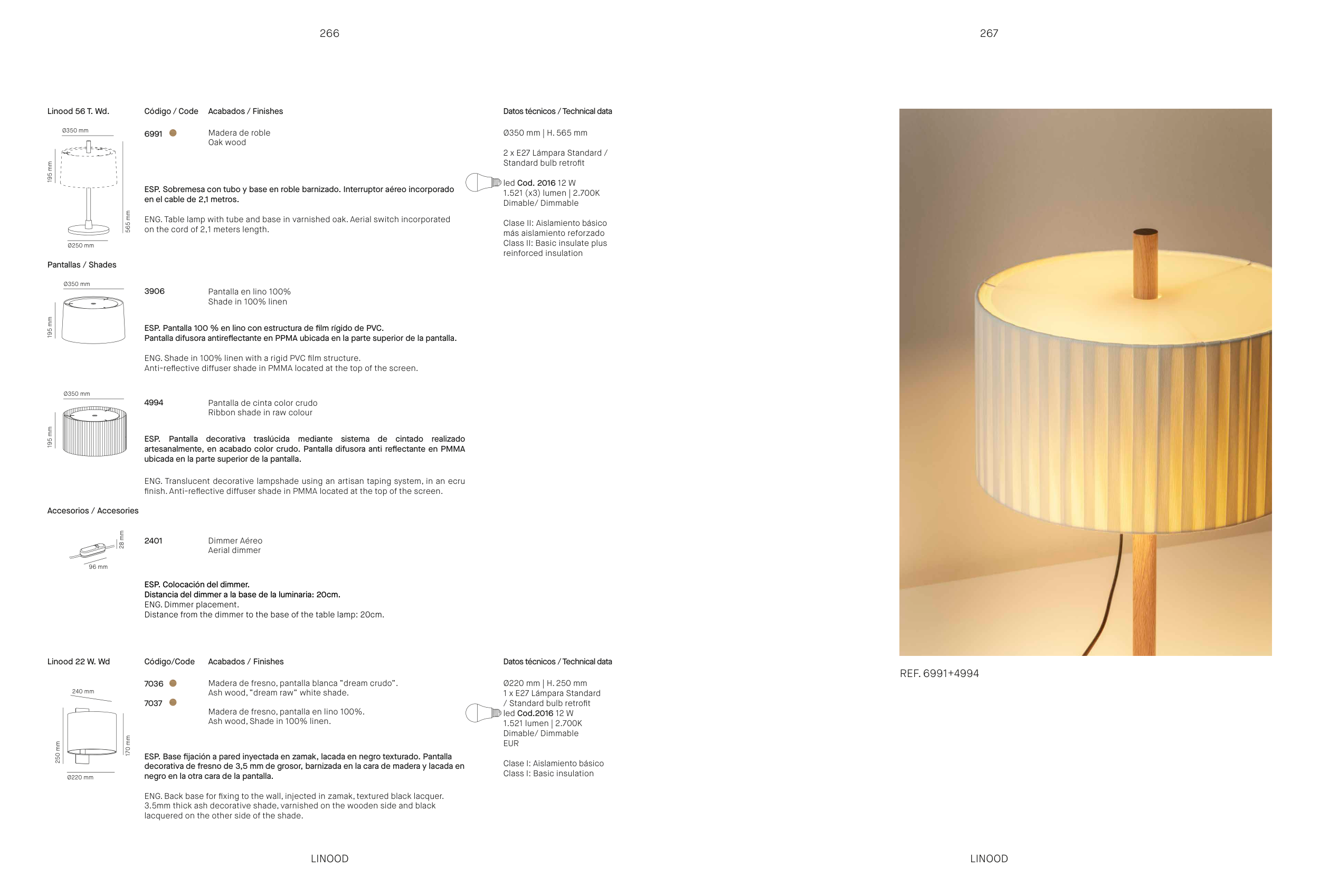 Madera de fresno, pantalla en lino 100%.