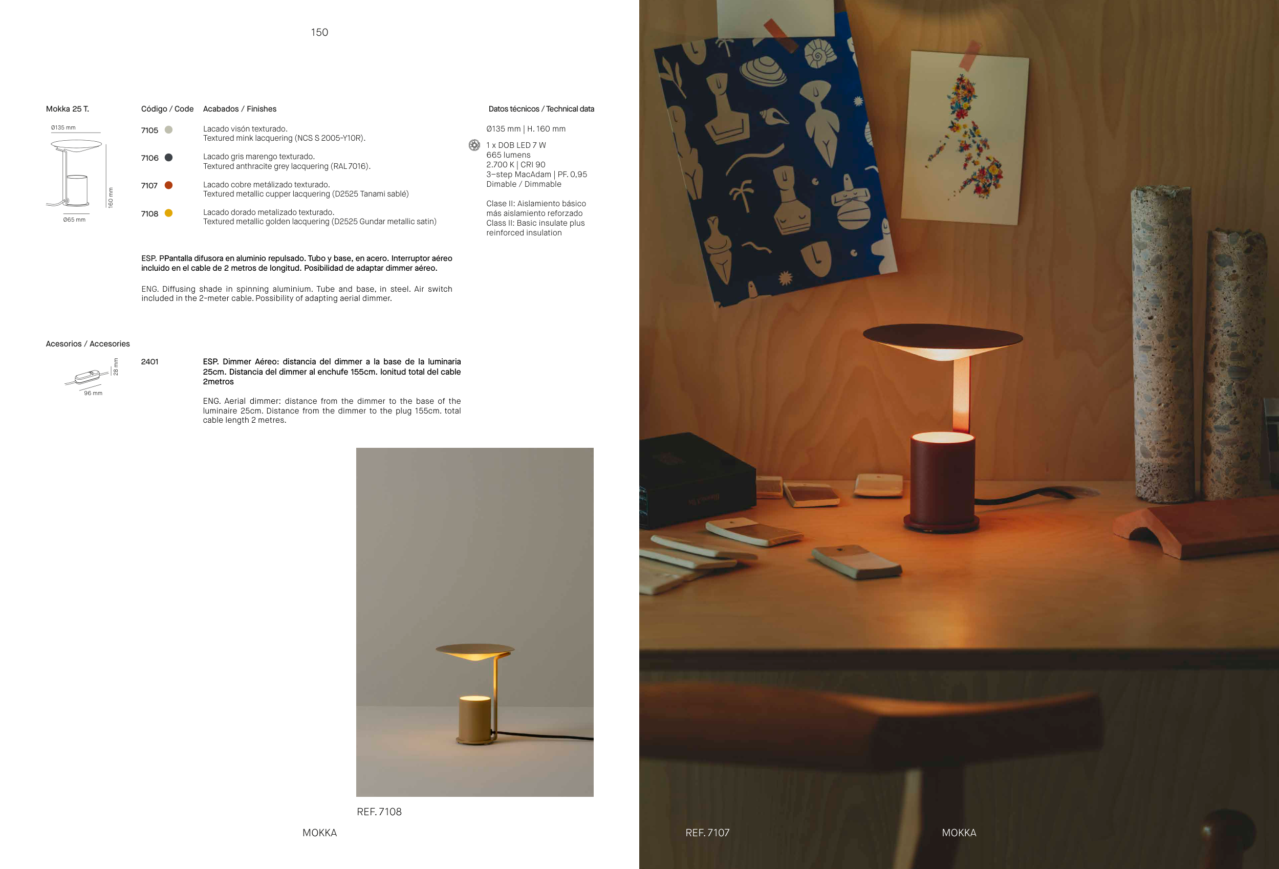 incluido en el cable de 2 metros de longitud. Posibilidad de adaptar dimmer aéreo.