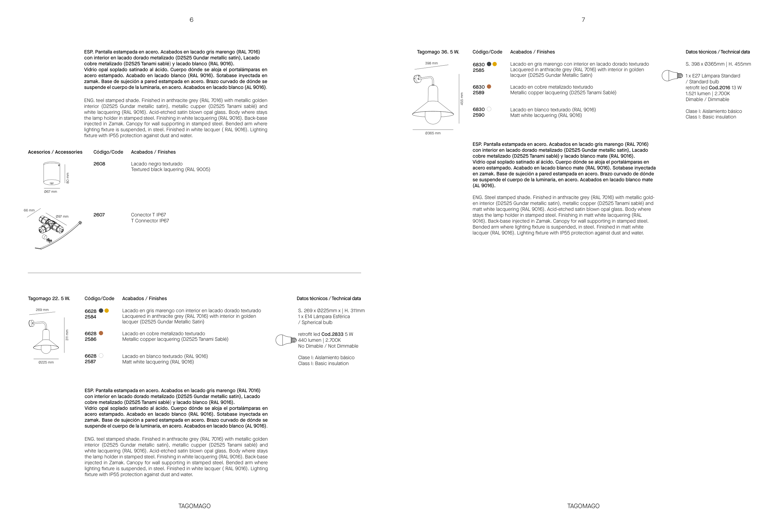 the lamp holder in stamped steel. Finishing in white lacquering (RAL 9016). Back-base