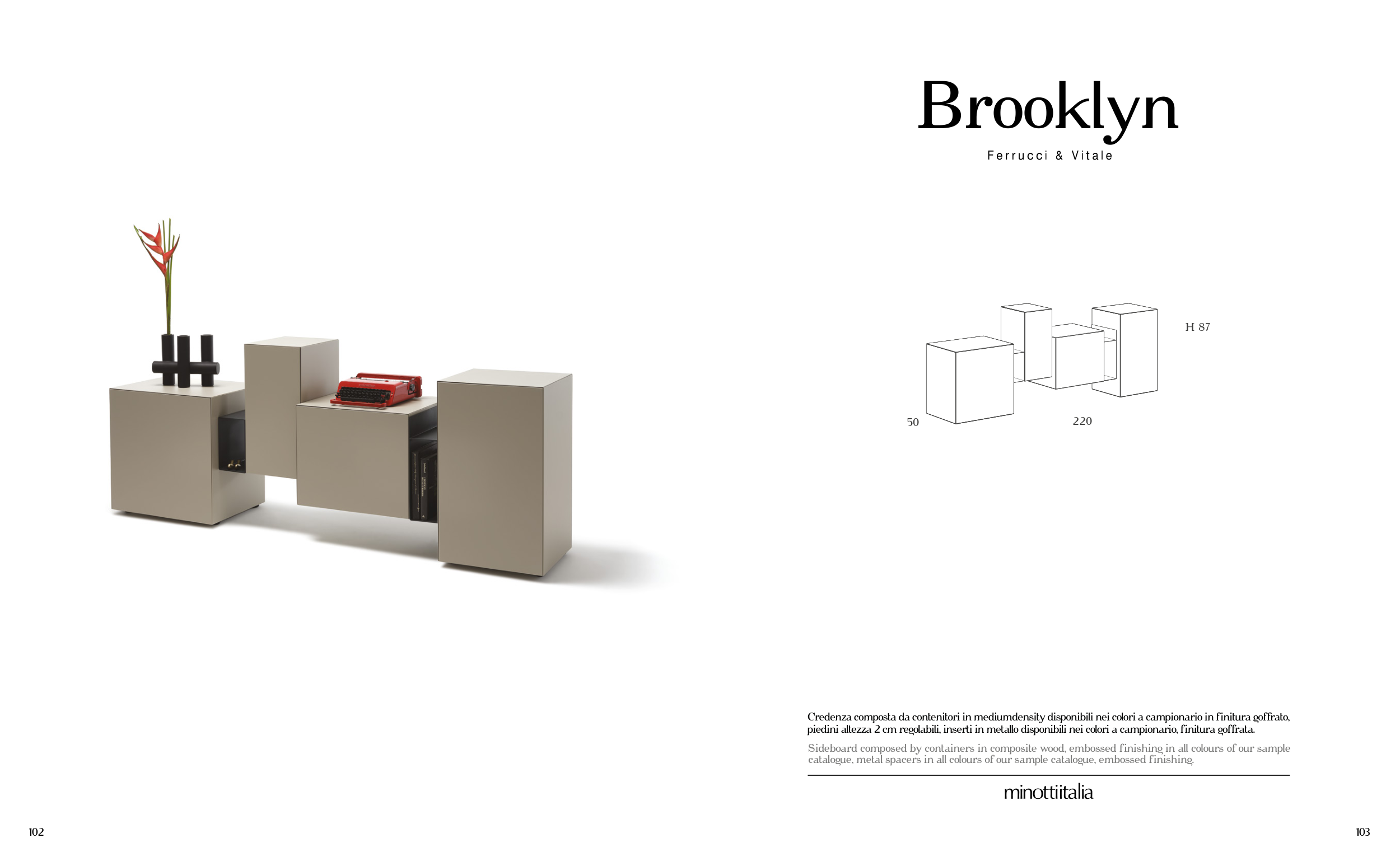 Sideboard composed by containers in composite wood, embossed finishing in all colours of our sample