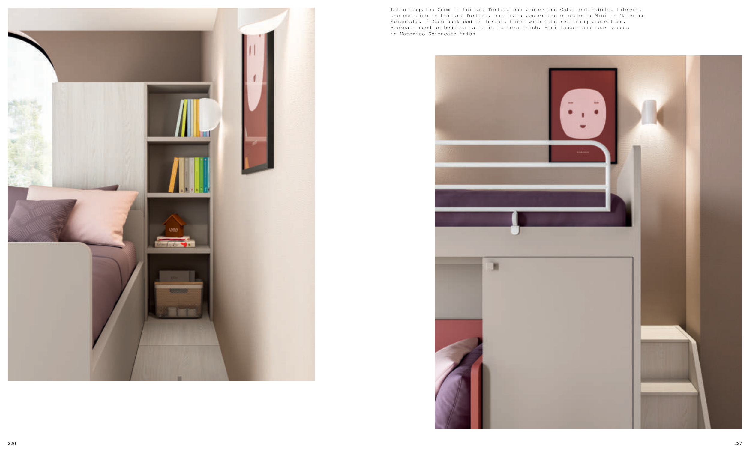 Sbiancato. / Zoom bunk bed in Tortora finish with Gate reclining protection.