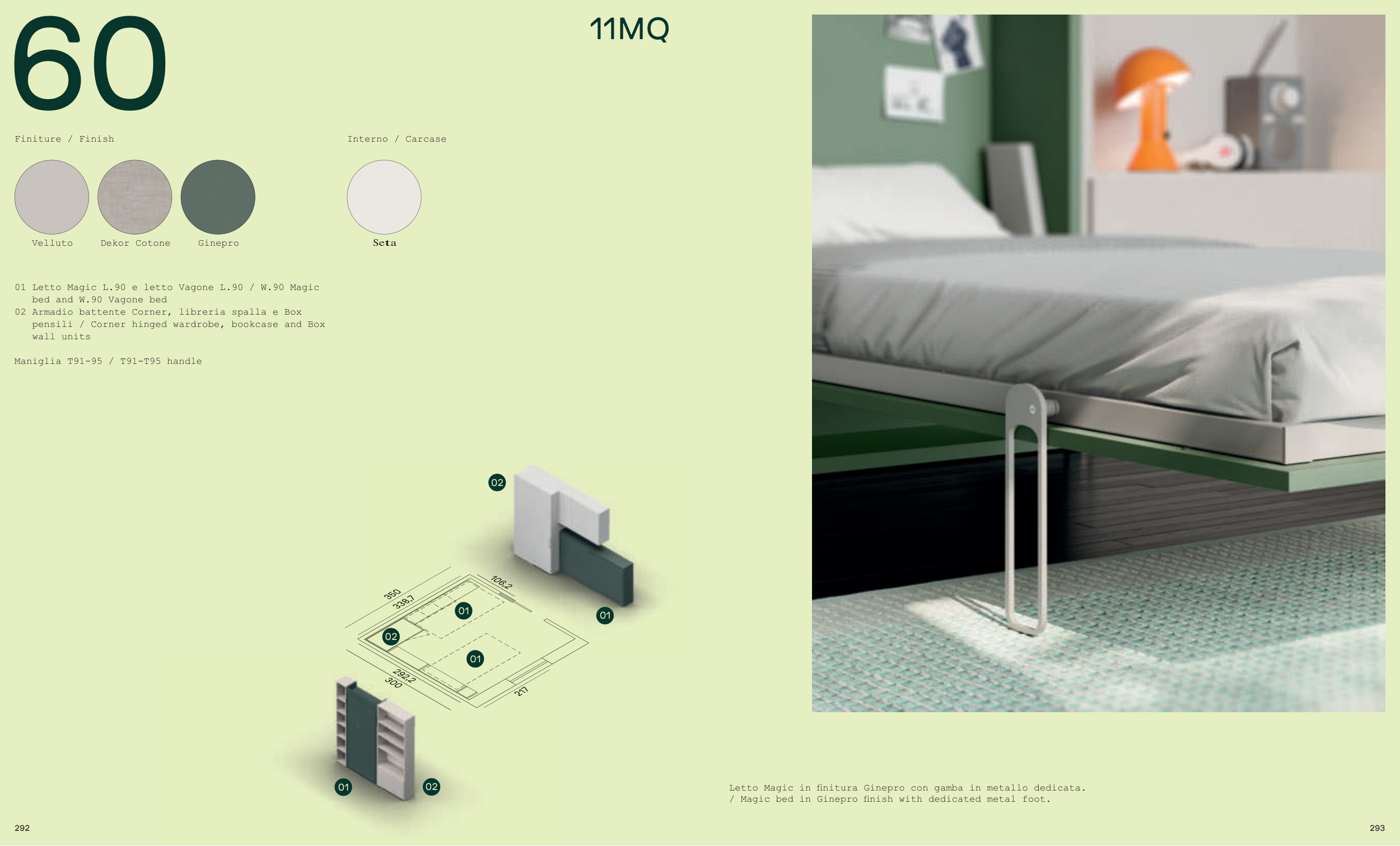 / Magic bed in Ginepro finish with dedicated metal foot.