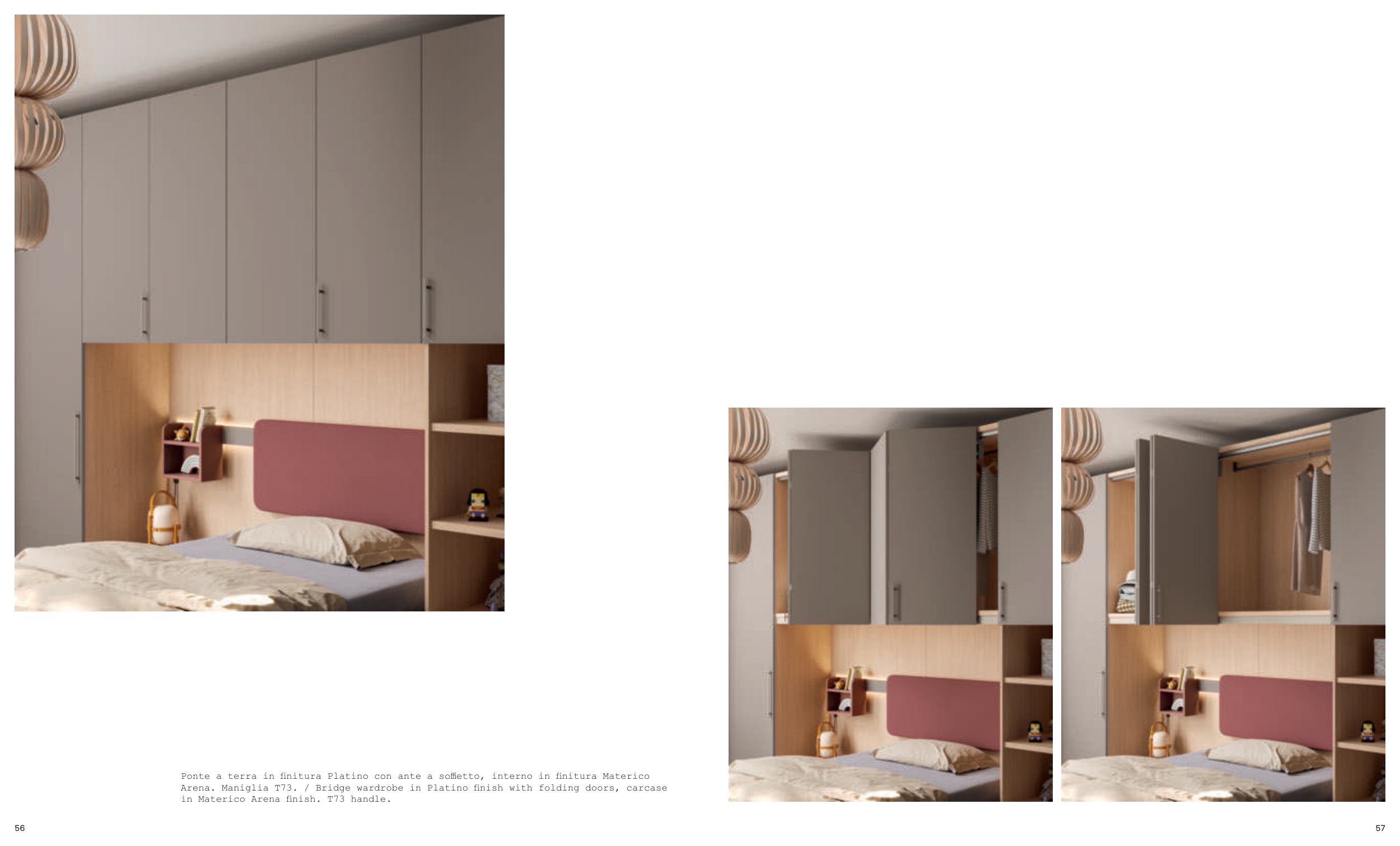 Arena. Maniglia T73. / Bridge wardrobe in Platino finish with folding doors, carcase