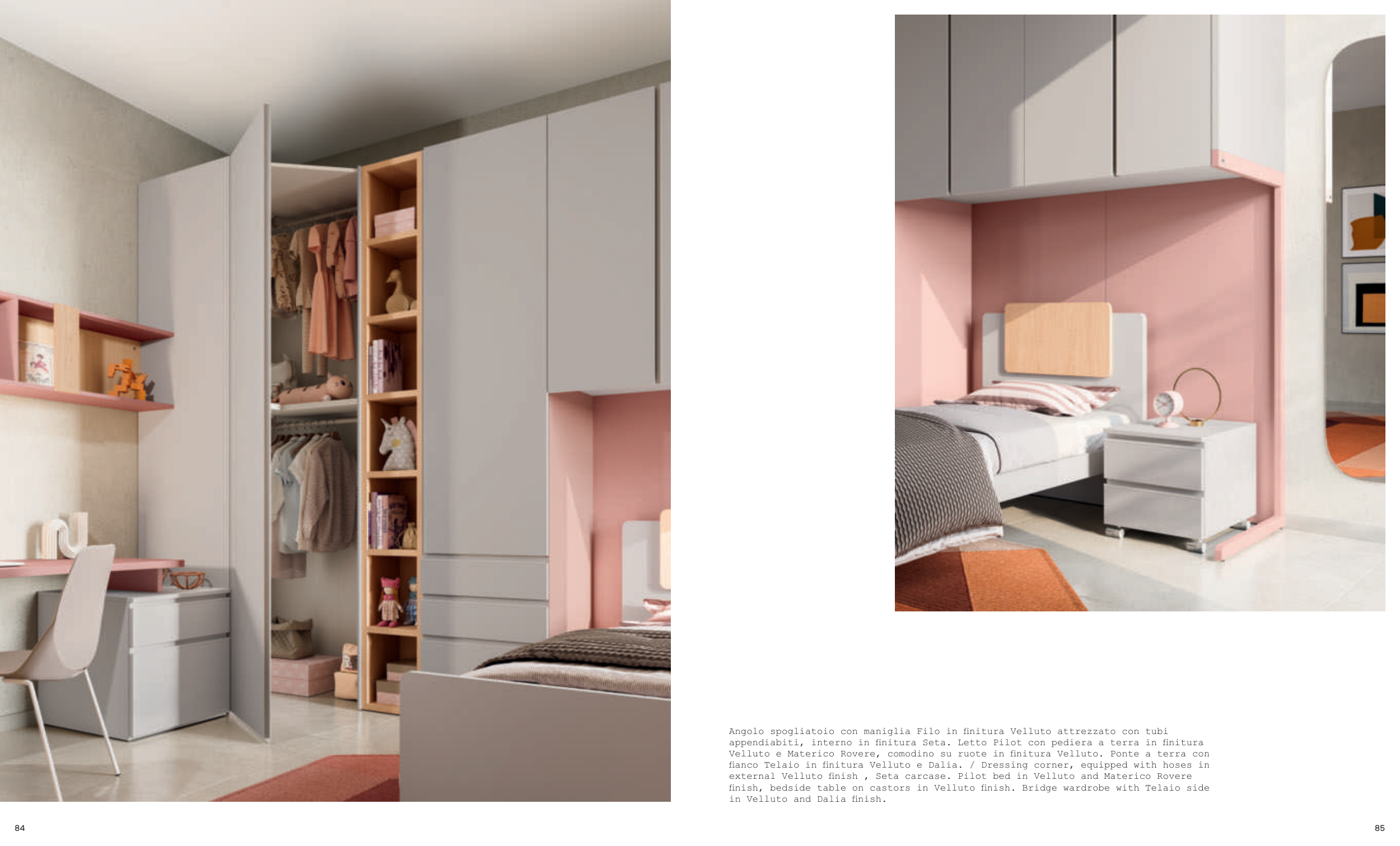 external Velluto finish , Seta carcase. Pilot bed in Velluto and Materico Rovere