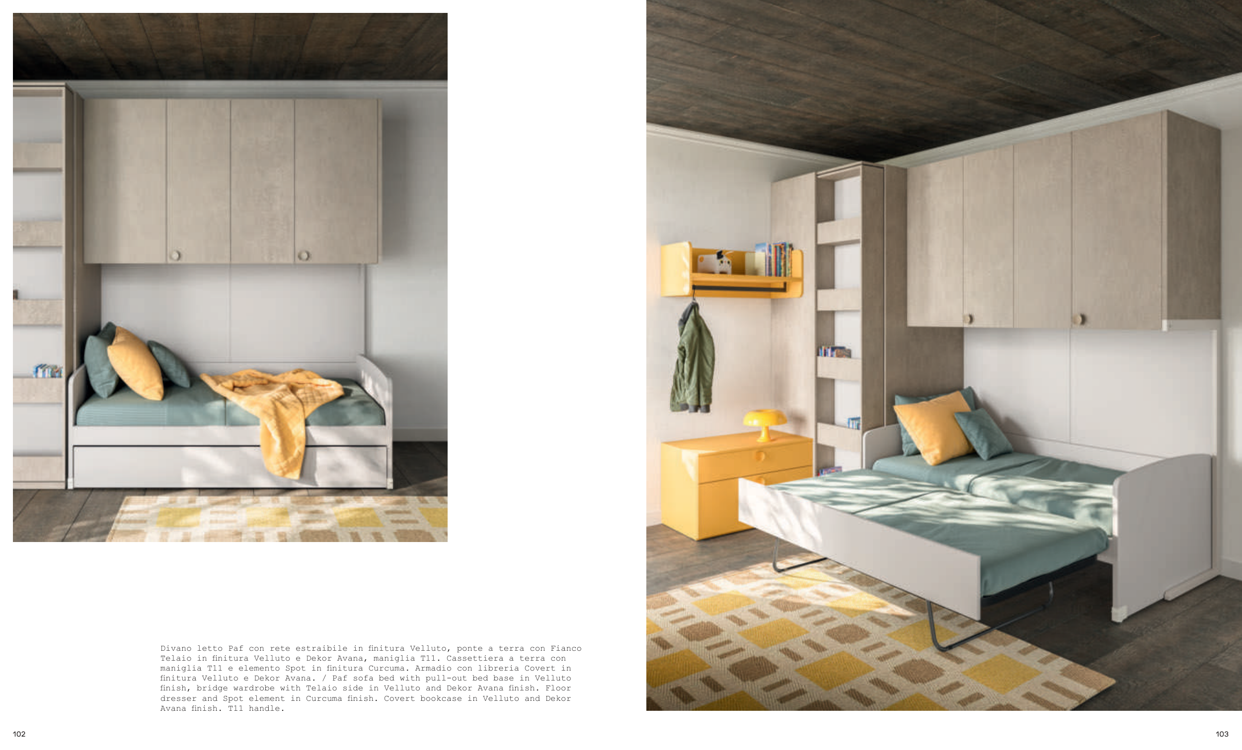 finish, bridge wardrobe with Telaio side in Velluto and Dekor Avana finish. Floor