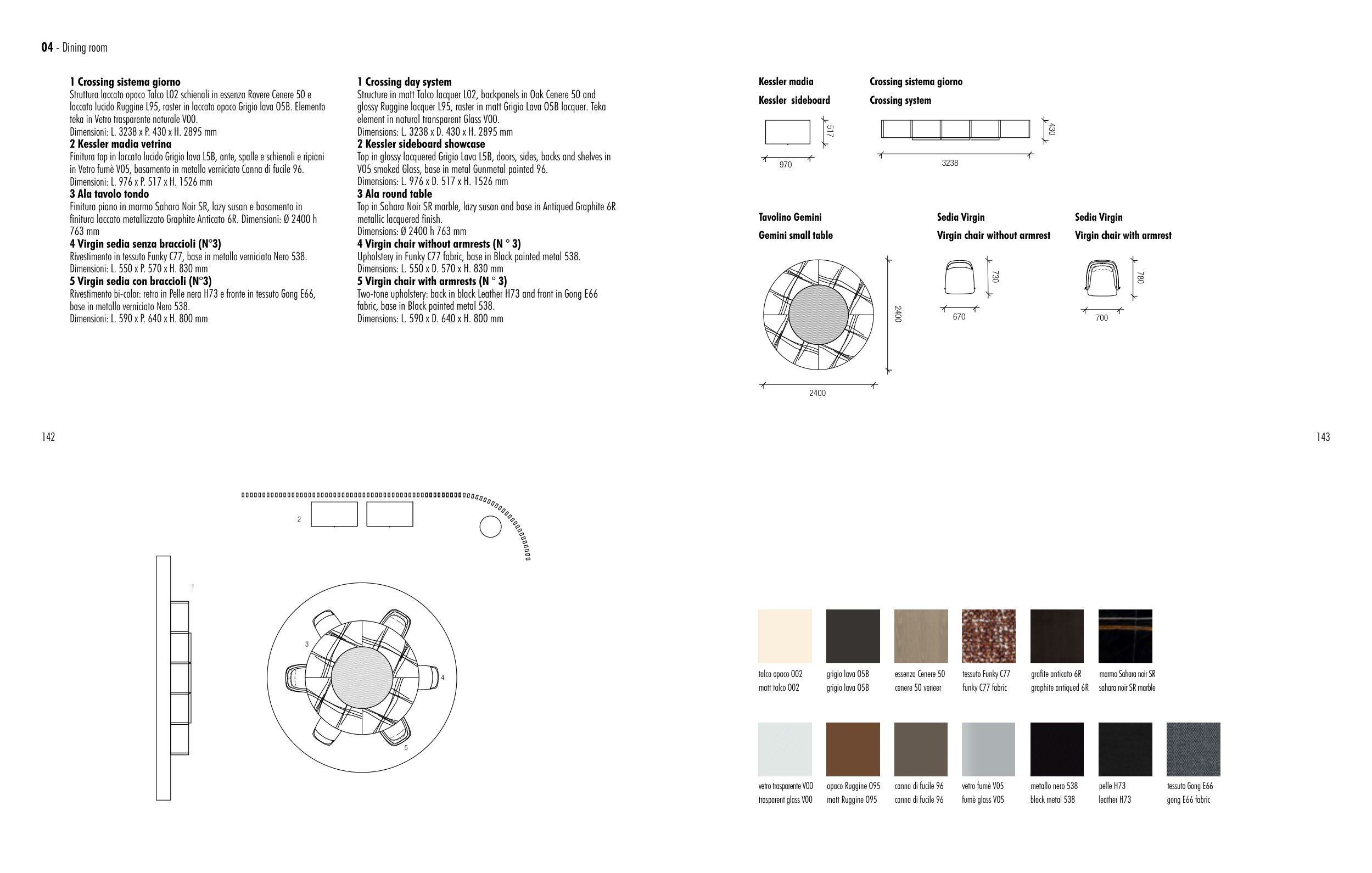finitura laccato metallizzato Graphite Anticato 6R. Dimensioni: Ø 2400 h