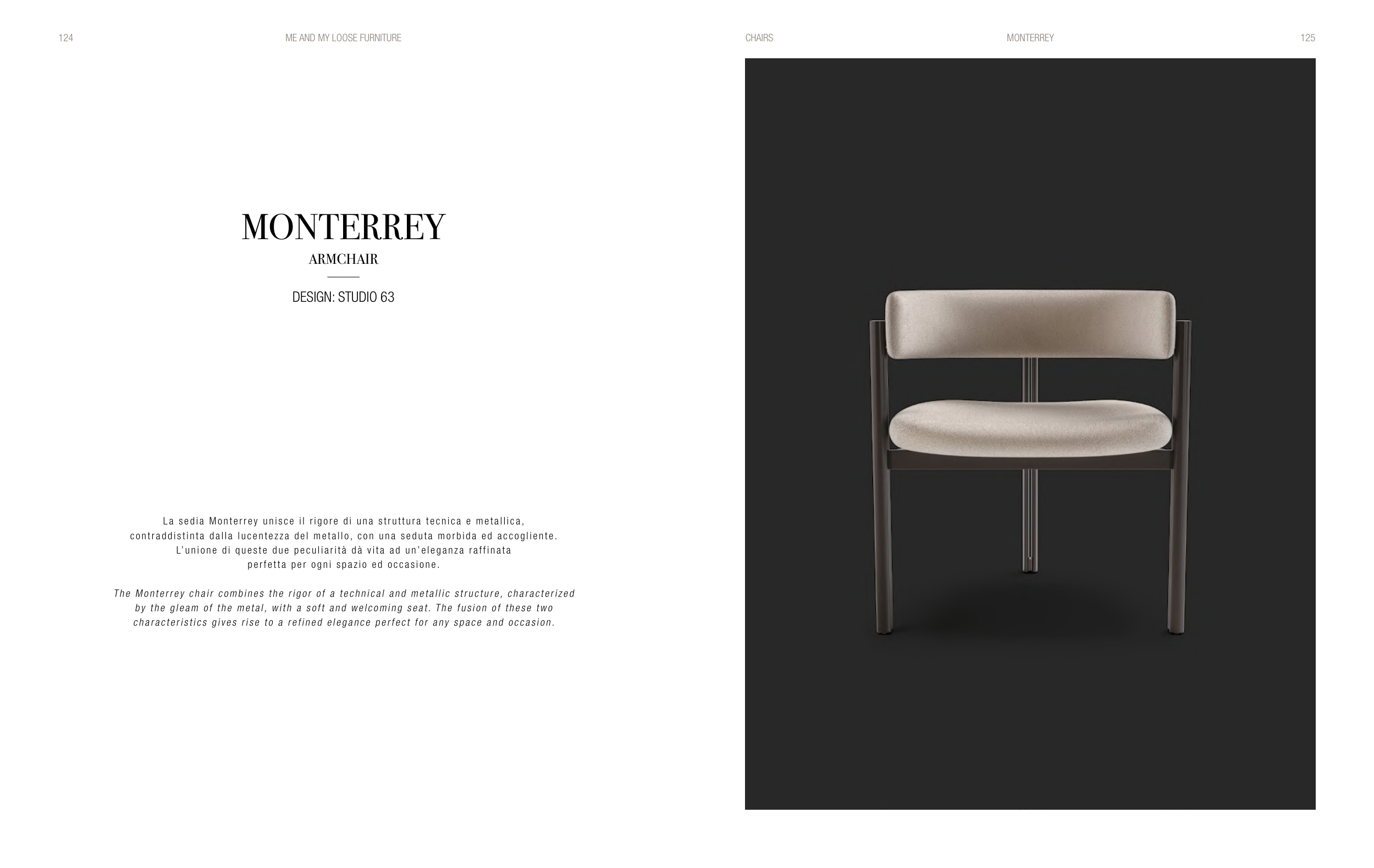 The Monterrey chair combines the rigor of a technical and metallic structure, characterized