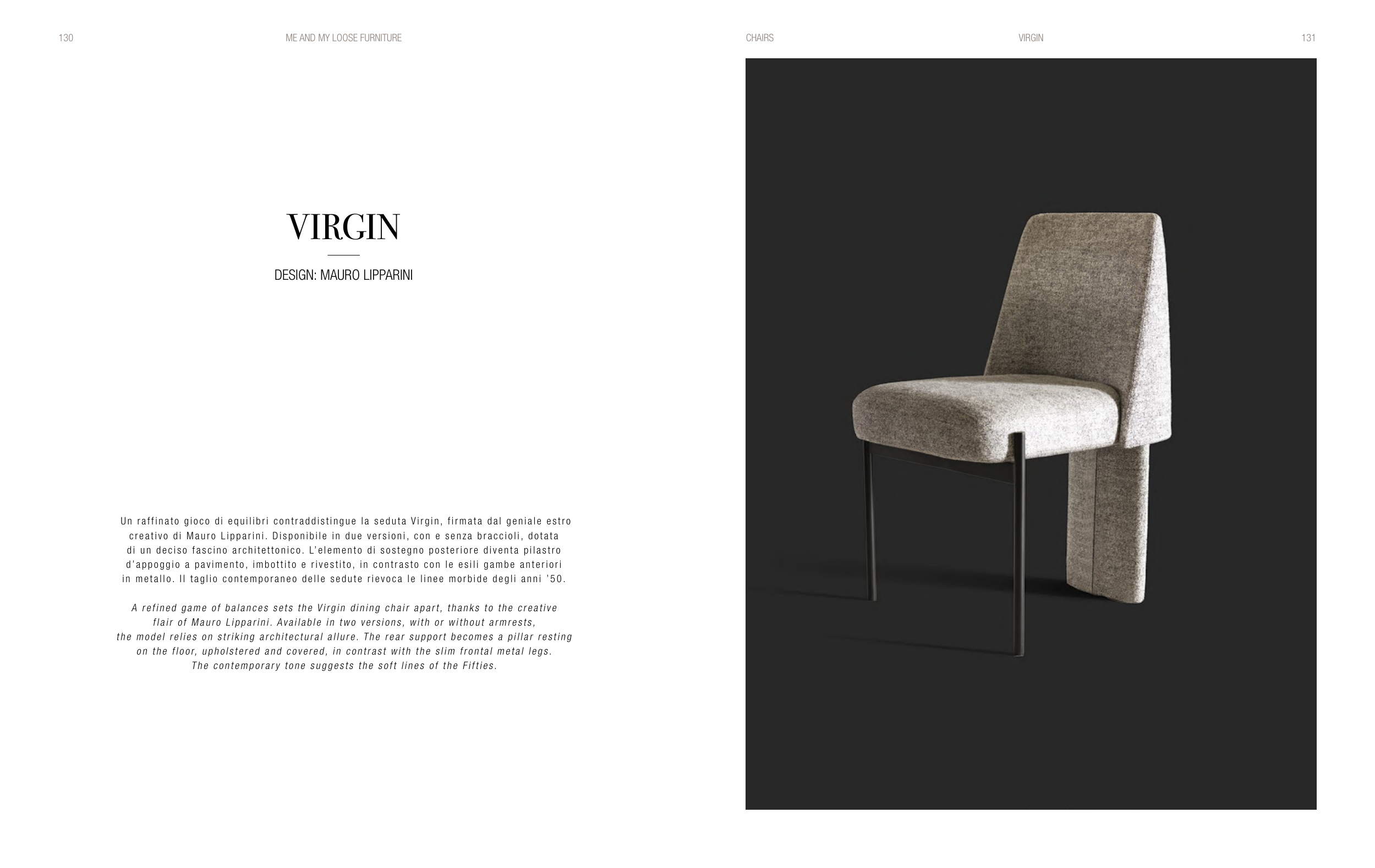 Un raffinato gioco di equilibri contraddistingue la seduta Virgin, firmata dal geniale estro