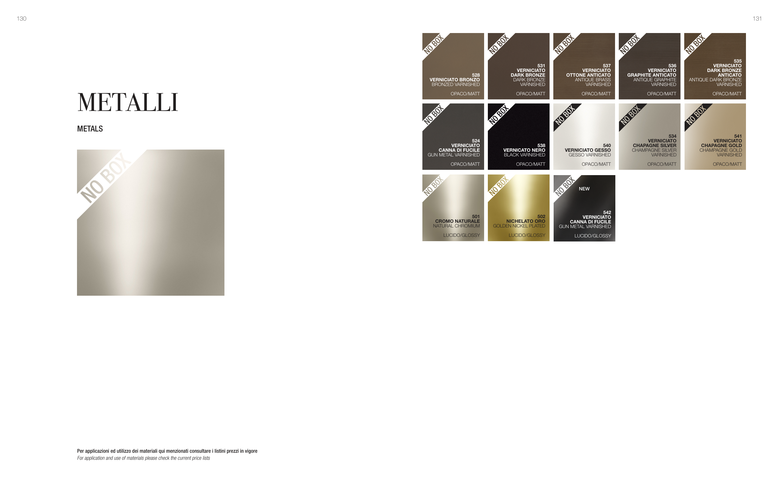Per applicazioni ed utilizzo dei materiali qui menzionati consultare i listini prezzi in vigore