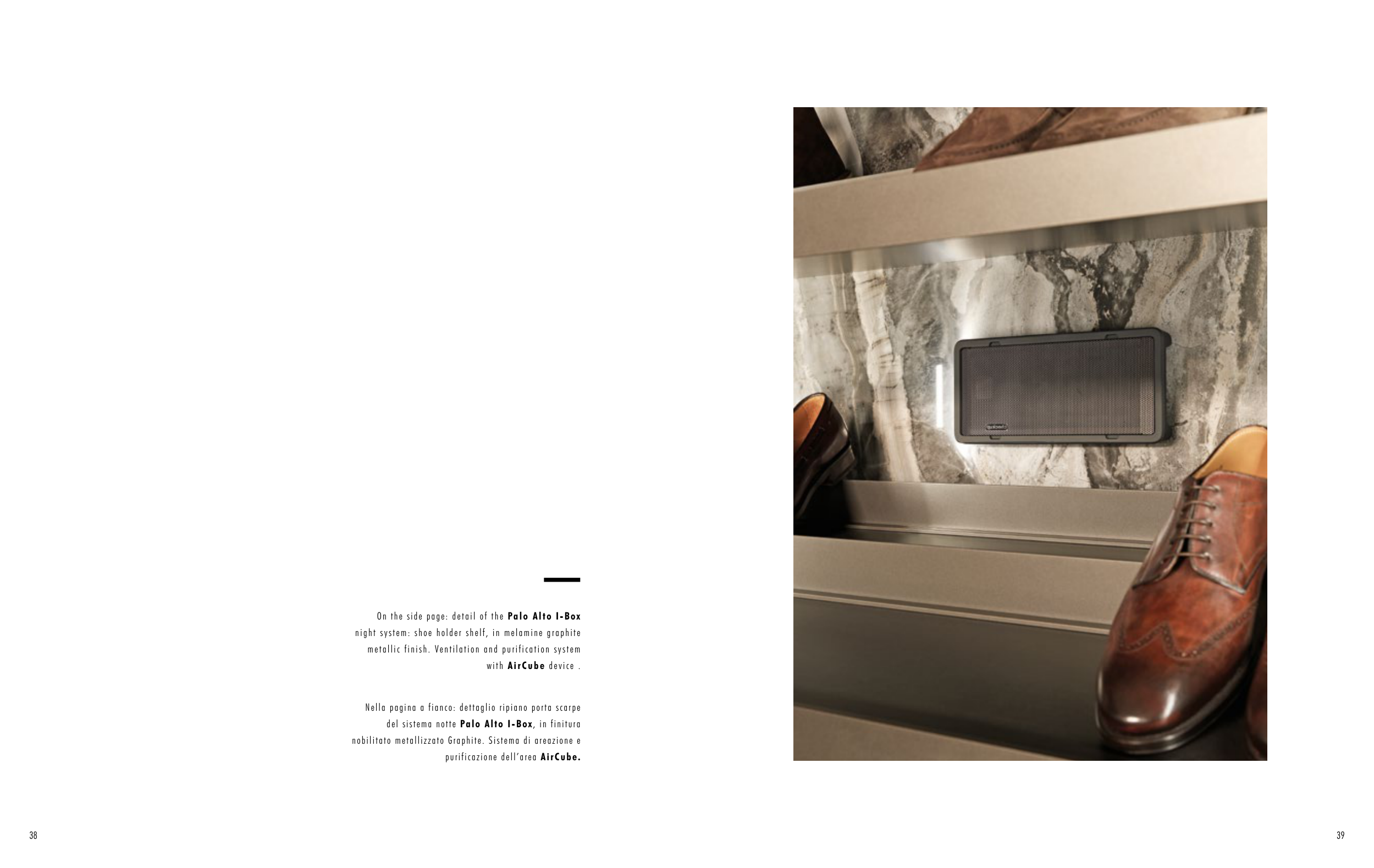 Nella pagina a fianco: dettaglio ripiano porta scarpe