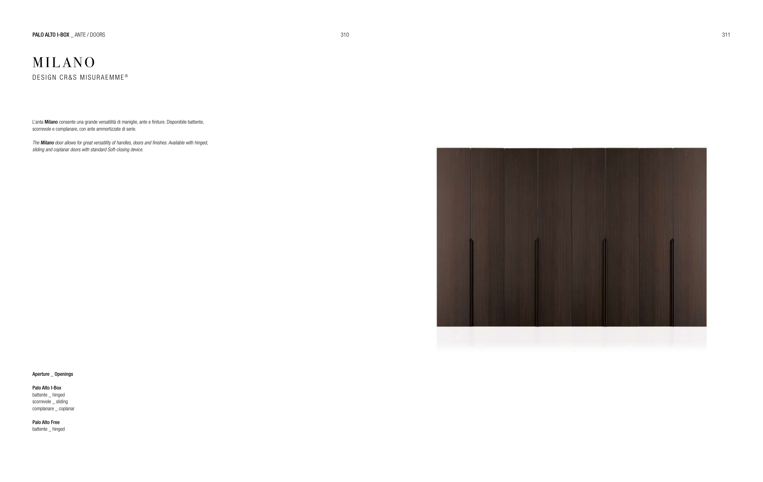 L’anta Milano consente una grande versatilità di maniglie, ante e finiture. Disponibile battente,