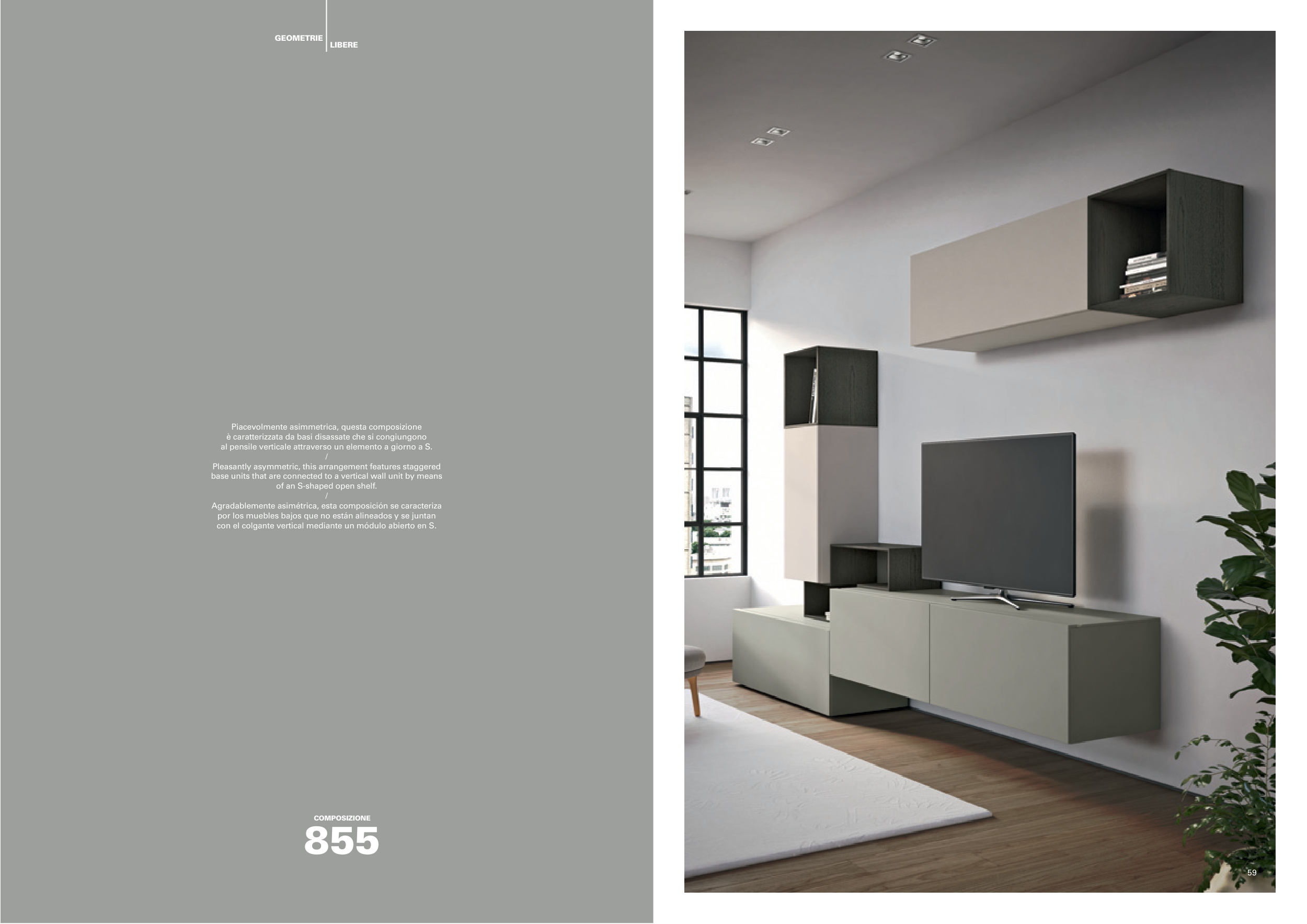 Agradablemente asimétrica, esta composición se caracteriza