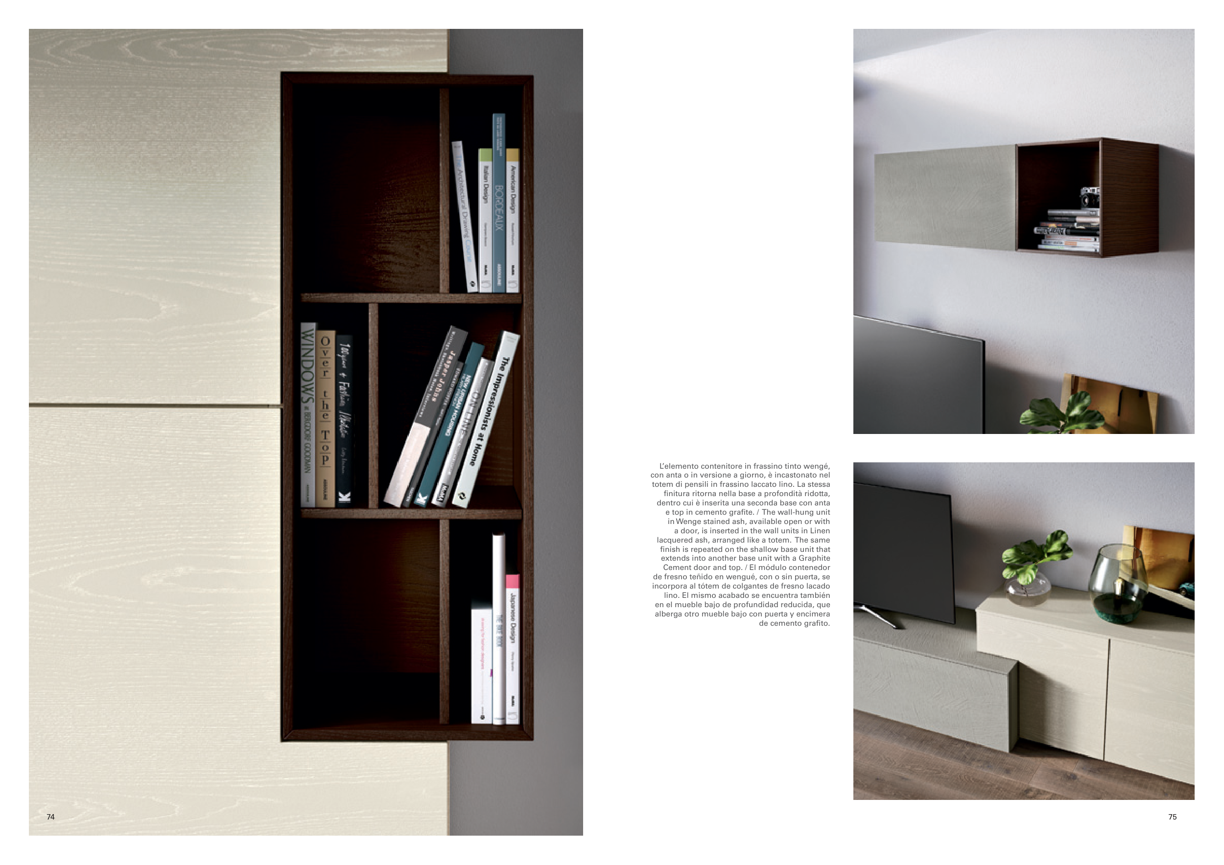 totem di pensili in frassino laccato lino. La stessa