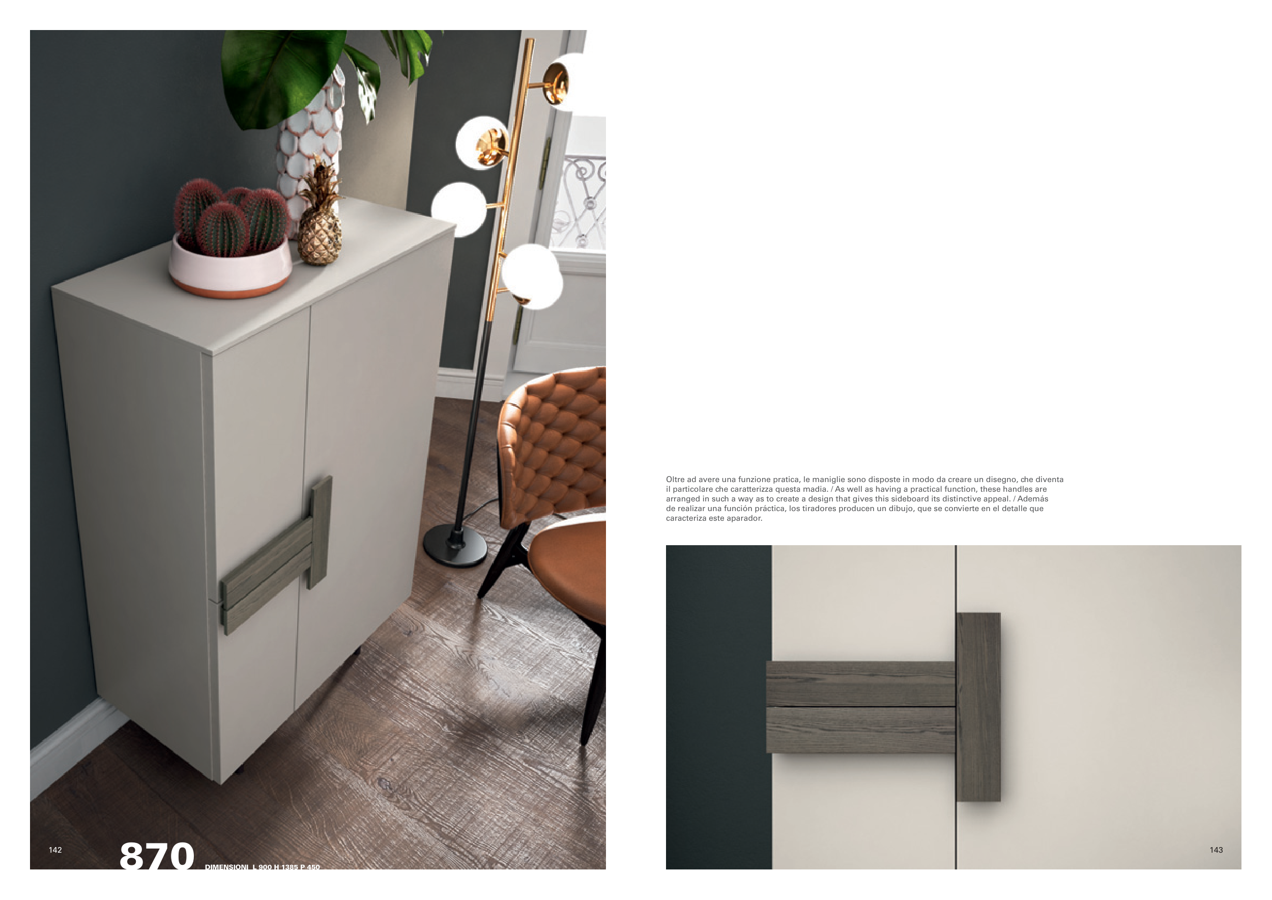il particolare che caratterizza questa madia. / As well as having a practical function, these handles are