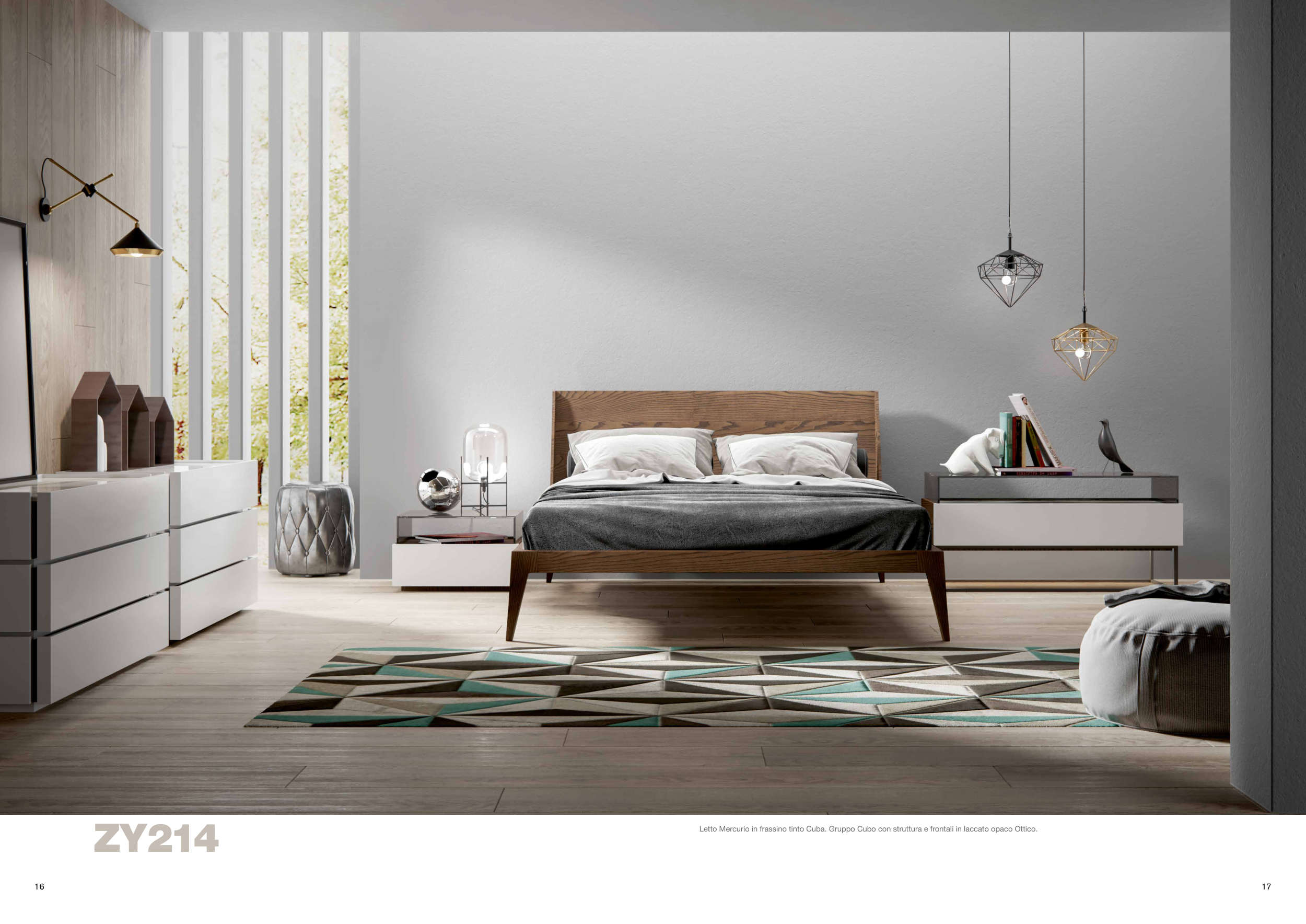 Letto Mercurio in frassino tinto Cuba. Gruppo Cubo con struttura e frontali in laccato opaco Ottico.