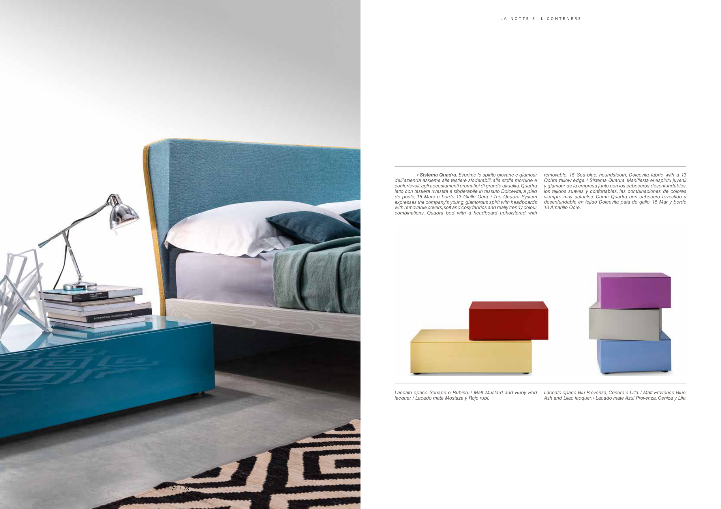combinations. Quadra bed with a headboard upholstered with