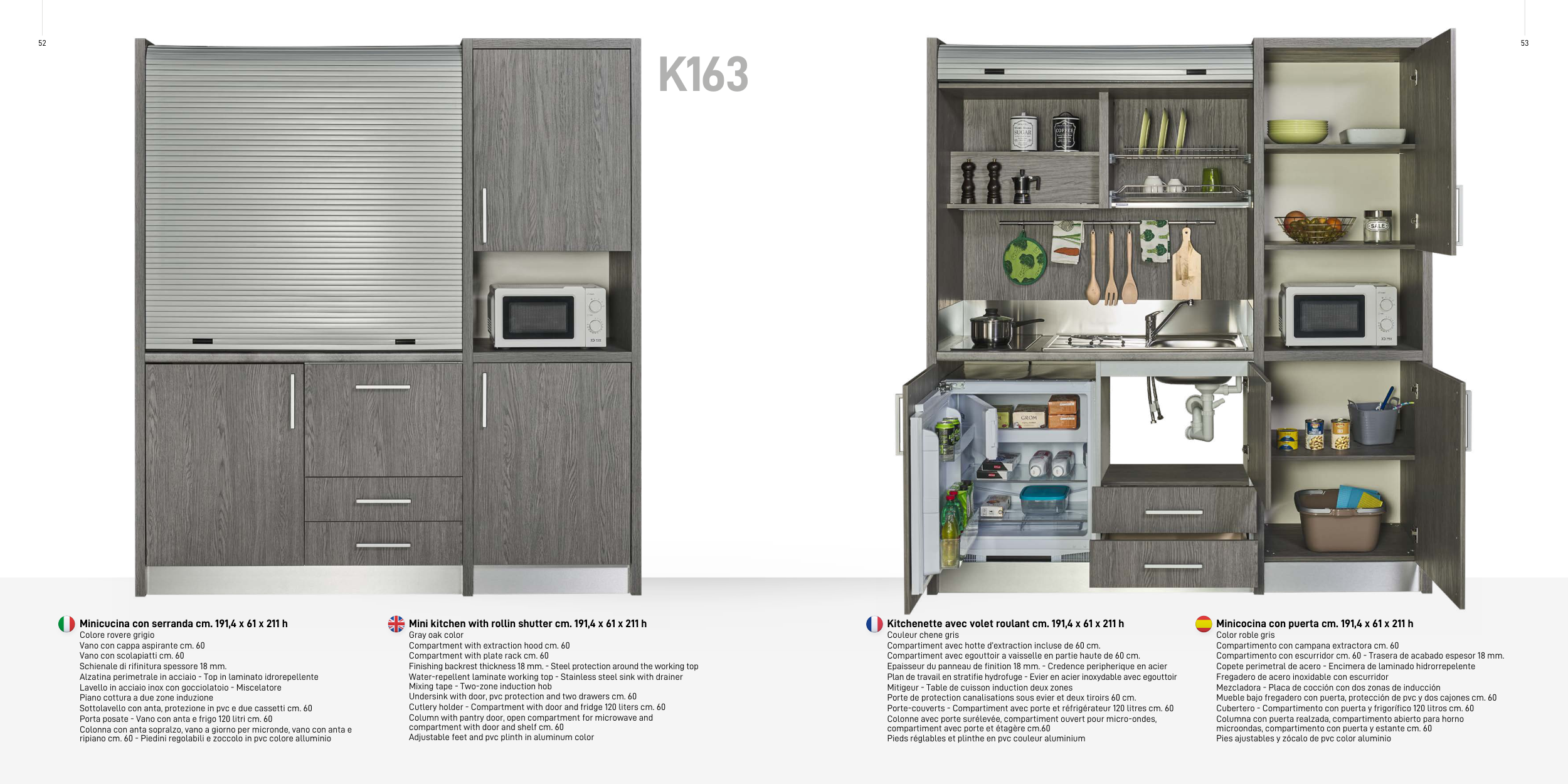 Minicucina con serranda cm. 191,4 x 61 x 211 h