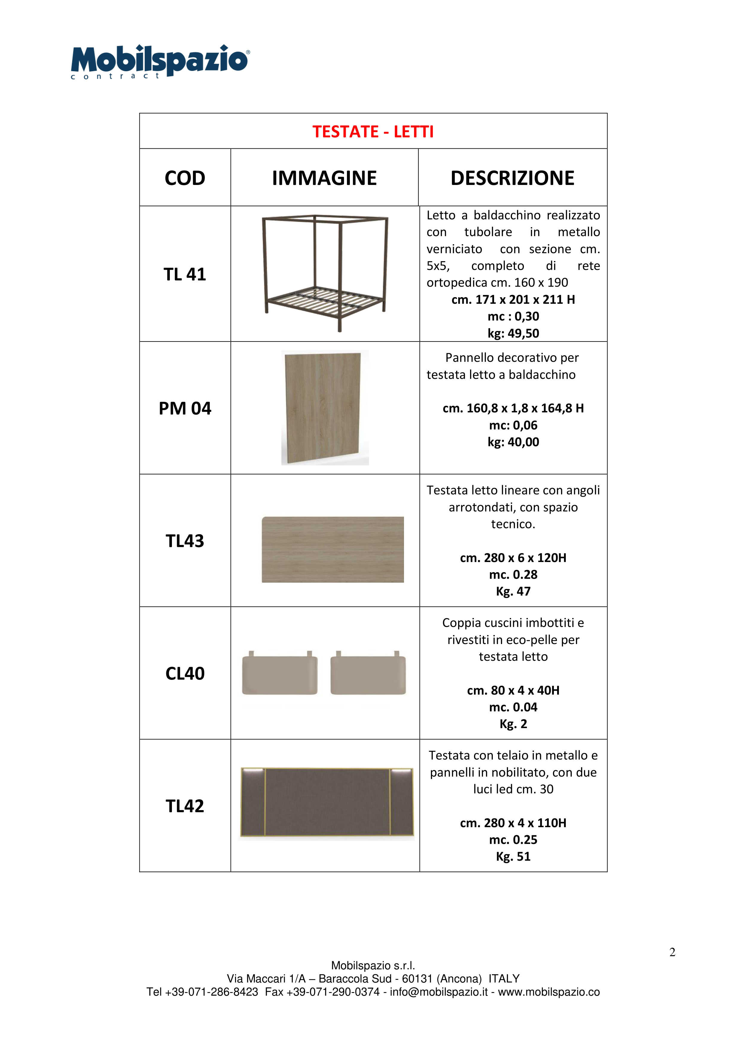 Tel +39-071-286-8423 Fax +39-071-290-0374 - info@mobilspazio.it - www.mobilspazio.co