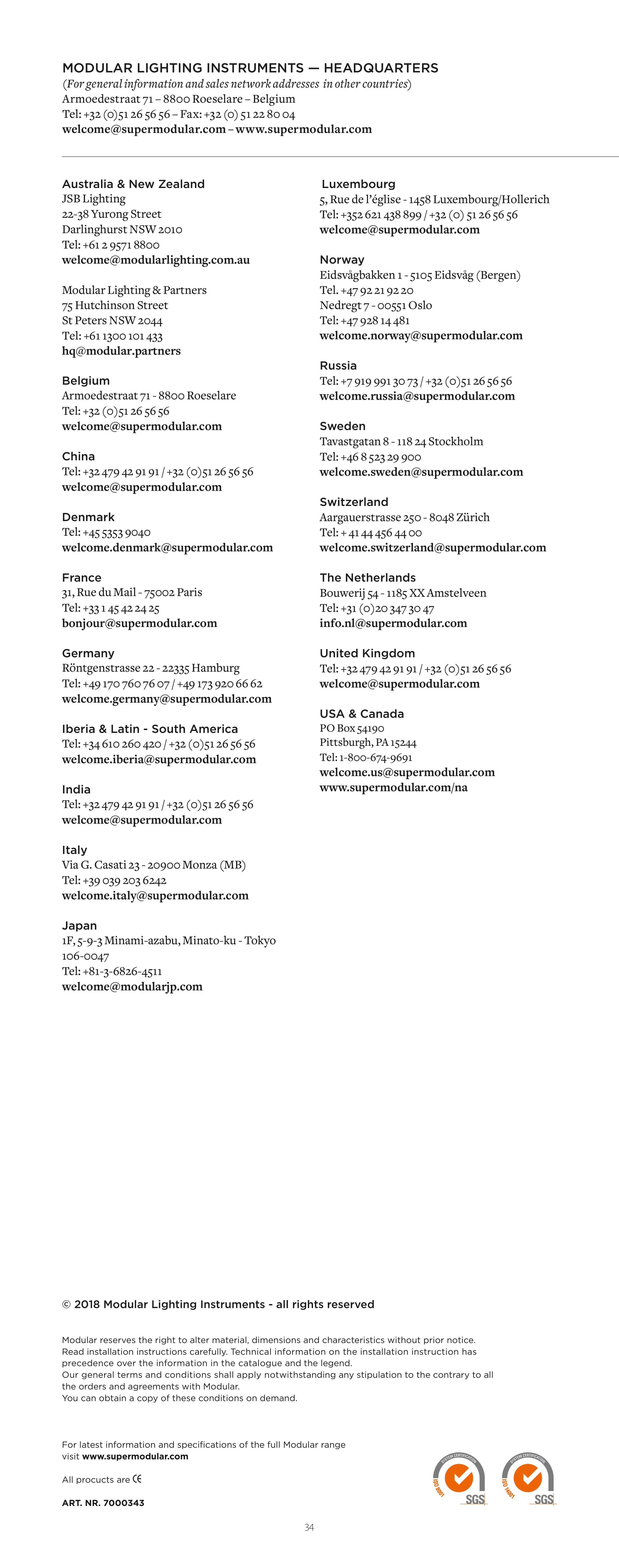 Modular reserves the right to alter material, dimensions and characteristics without prior notice.