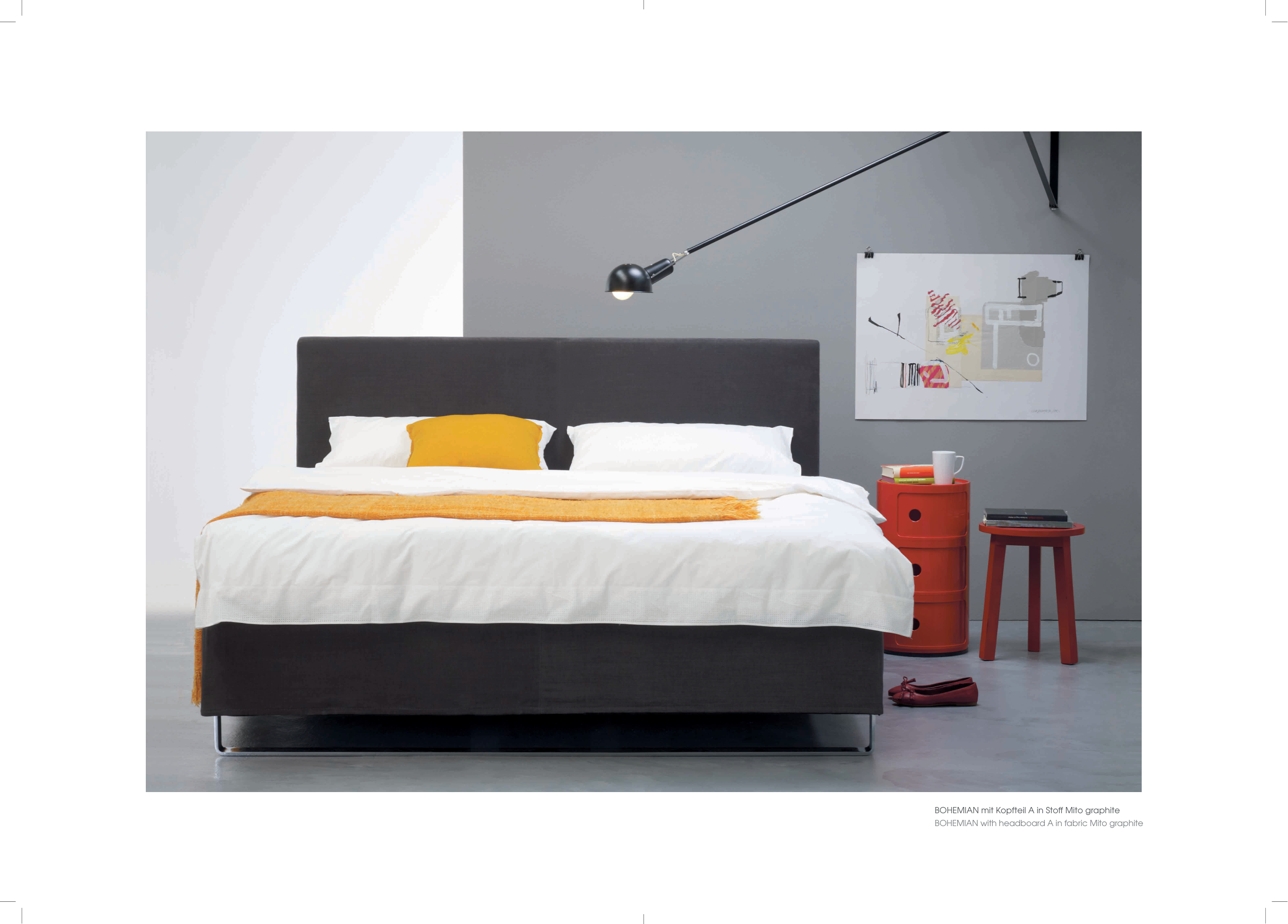 BOHEMIAN with headboard A in fabric Mito graphite
