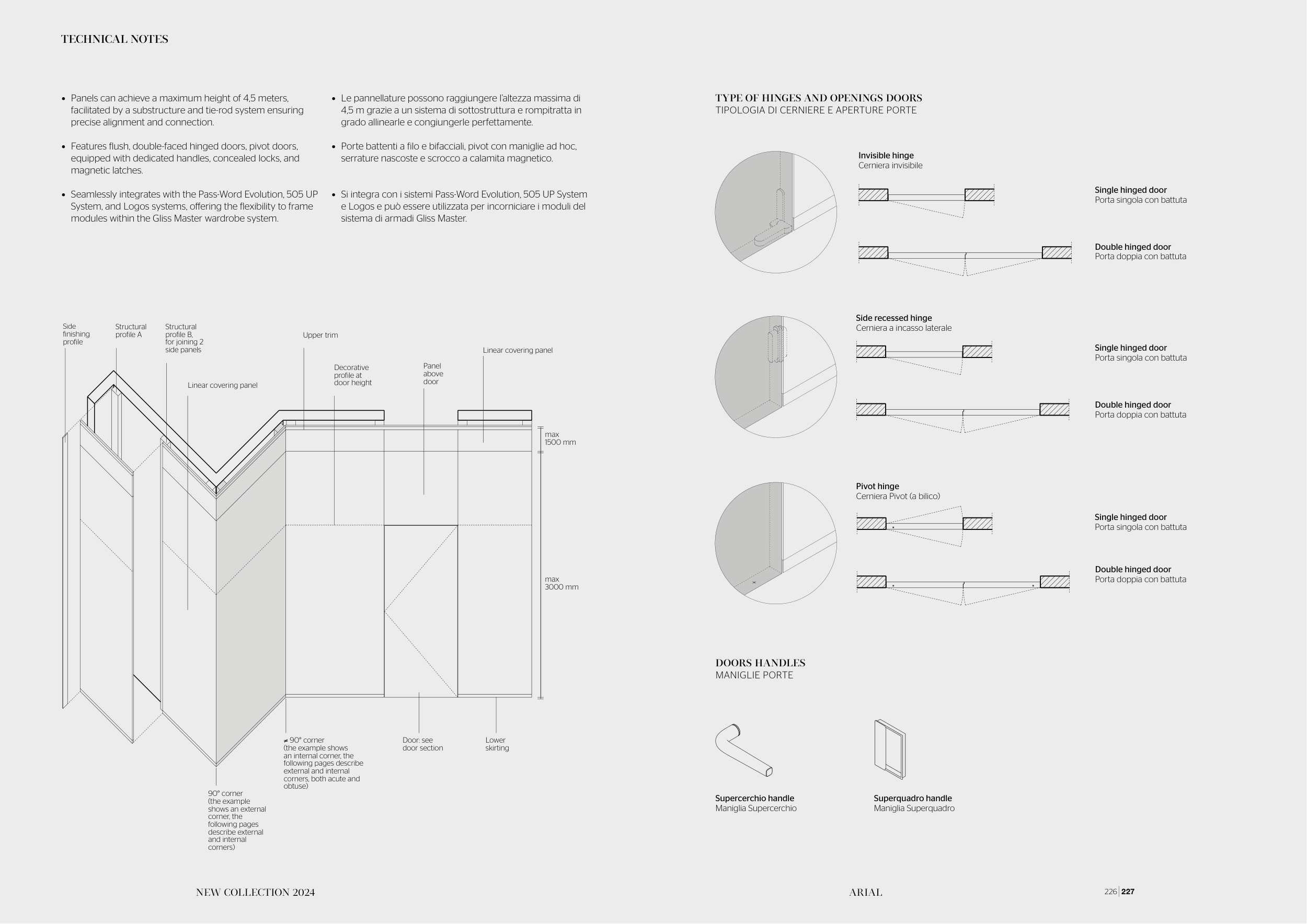 • Features flush, double-faced hinged doors, pivot doors,
