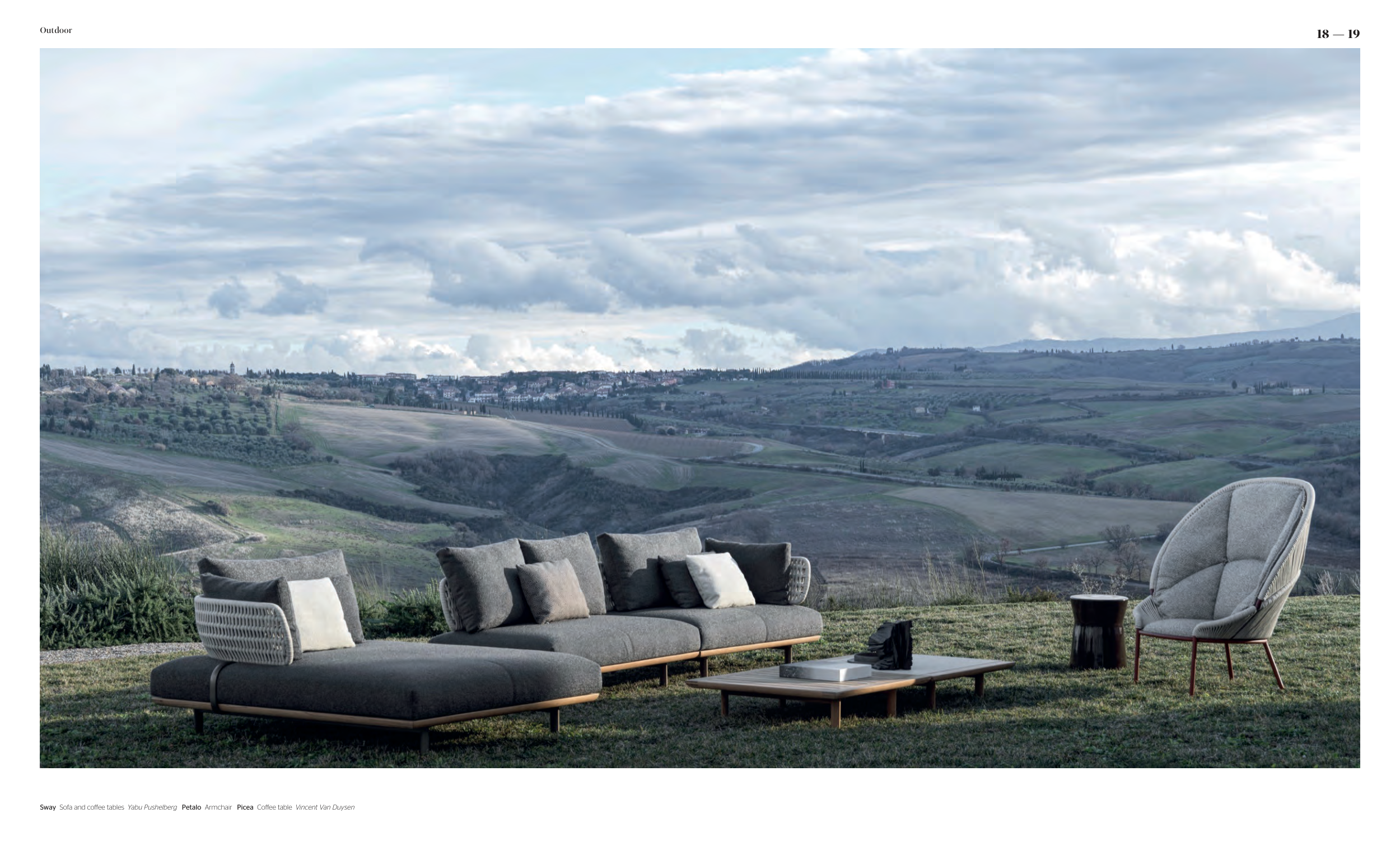 Sway Sofa and coffee tables Yabu Pushelberg Petalo Armchair Picea Coffee table Vincent Van Duysen
