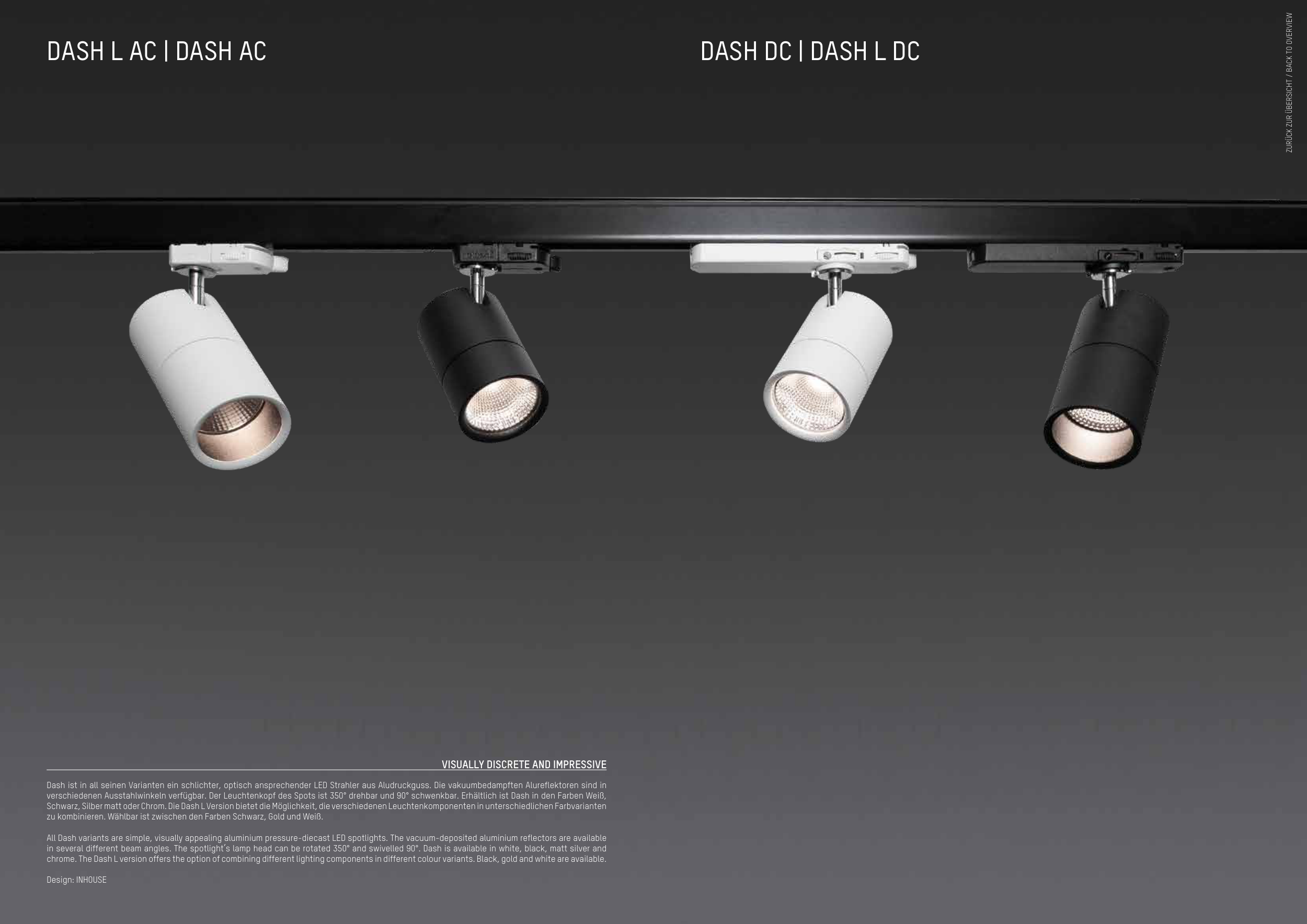 All Dash variants are simple, visually appealing aluminium pressure-diecast LED spotlights. The vacuum-deposited aluminium reflectors are available