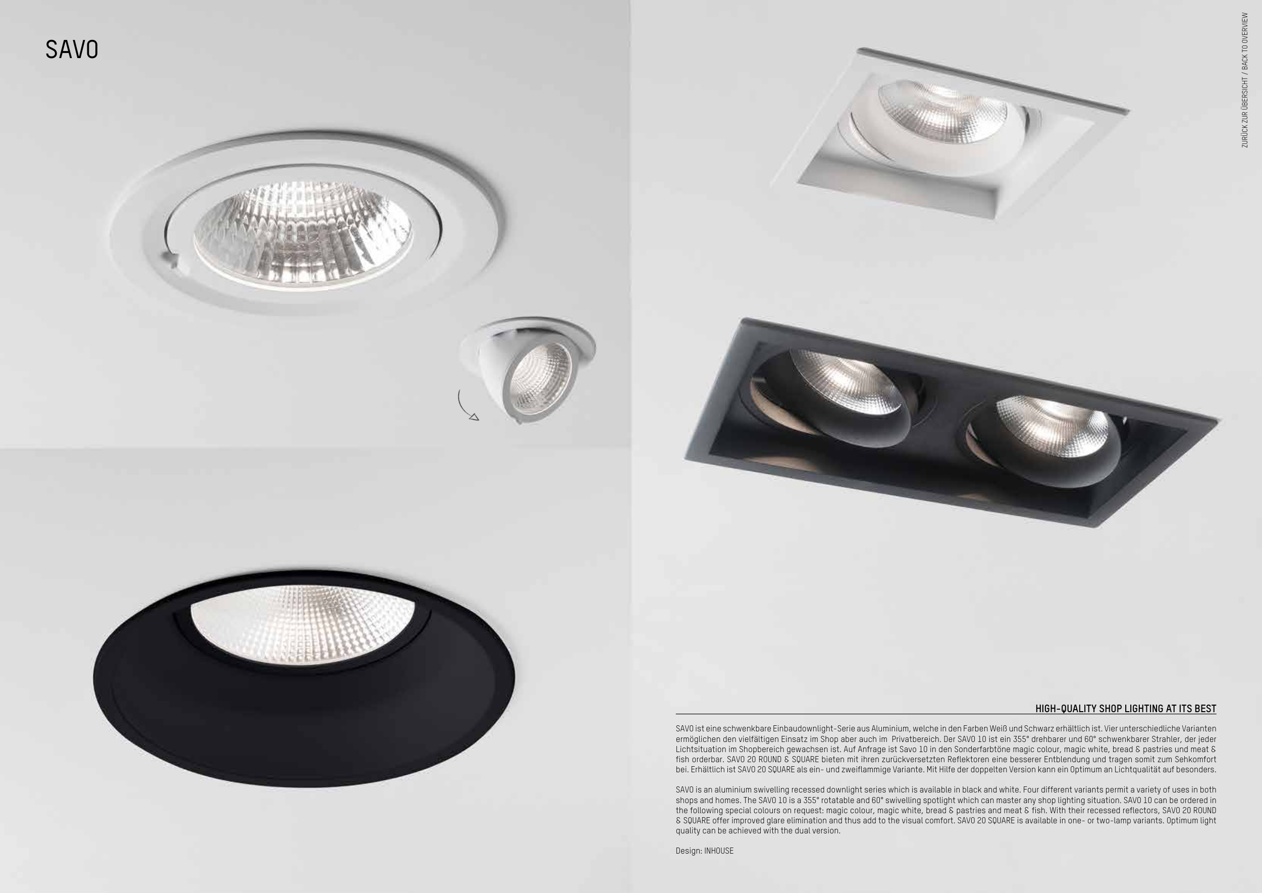 shops and homes. The SAVO 10 is a 355° rotatable and 60° swivelling spotlight which can master any shop lighting situation. SAVO 10 can be ordered in