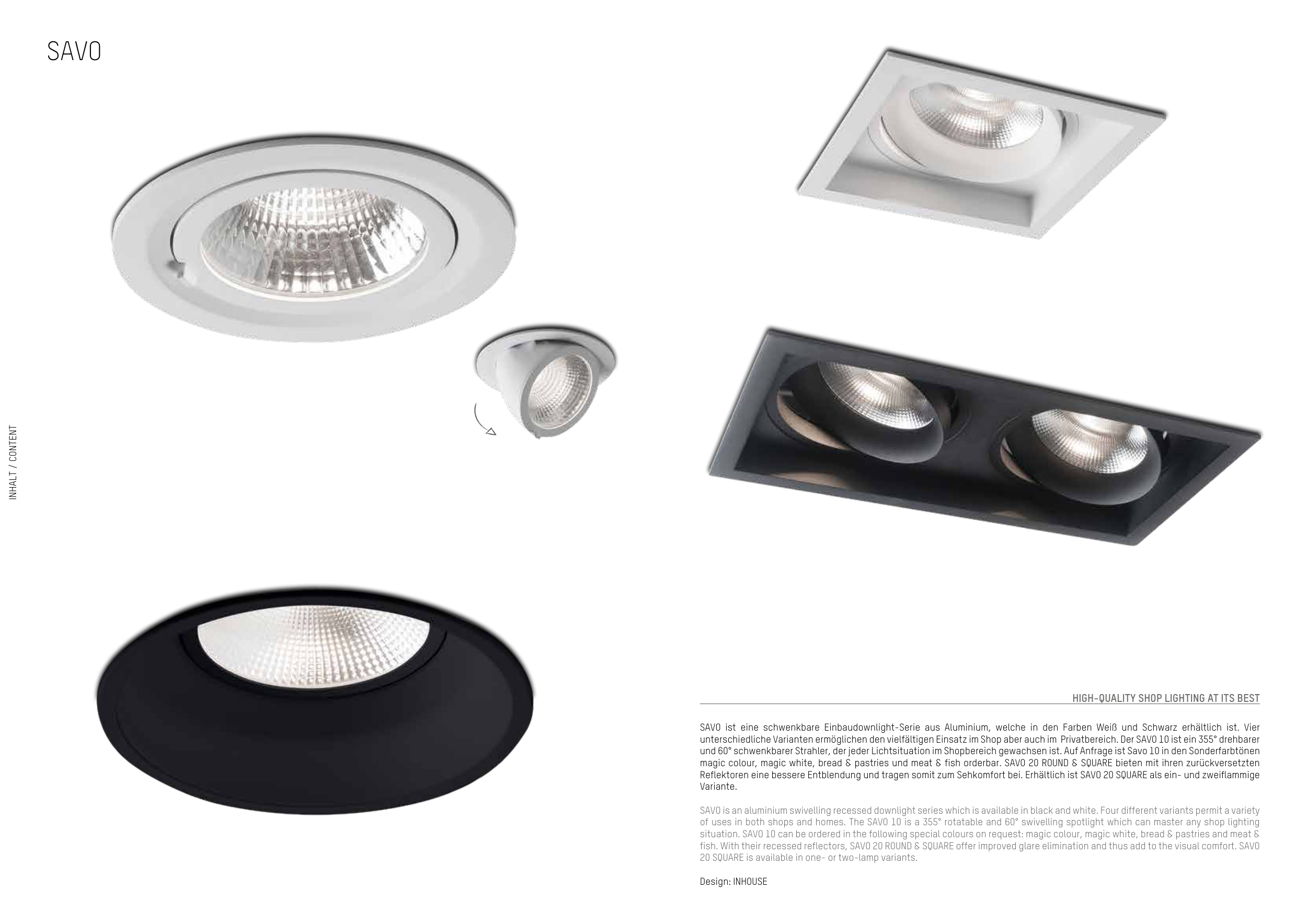 of uses in both shops and homes. The SAVO 10 is a 355° rotatable and 60° swivelling spotlight which can master any shop lighting