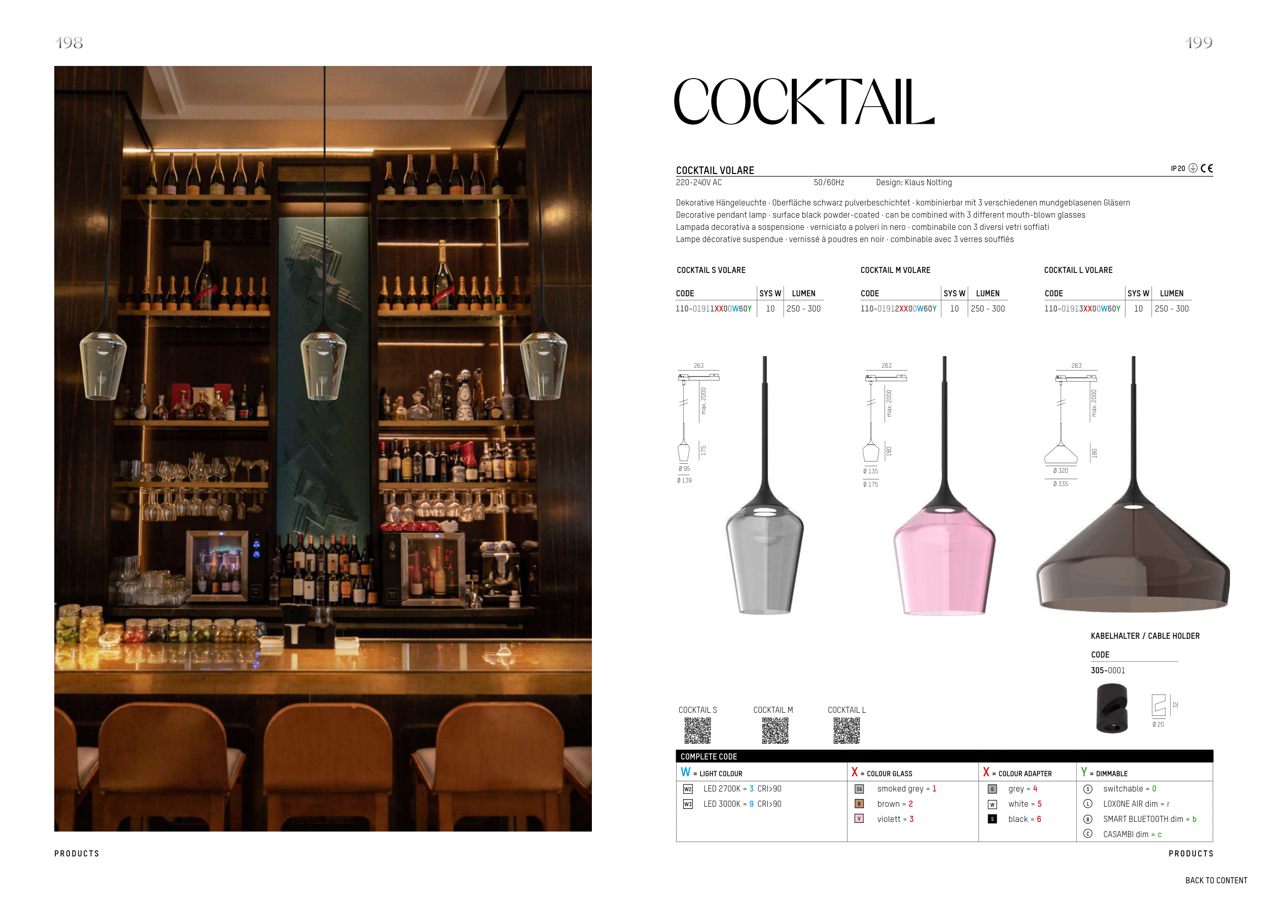 Decorative pendant lamp · surface black powder-coated · can be combined with 3 different mouth-blown glasses