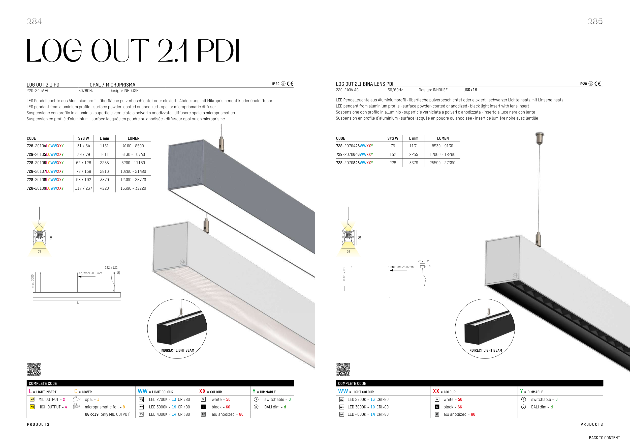 LED pendant from aluminium profile · surface powder-coated or anodized · opal or microprismatic diffuser