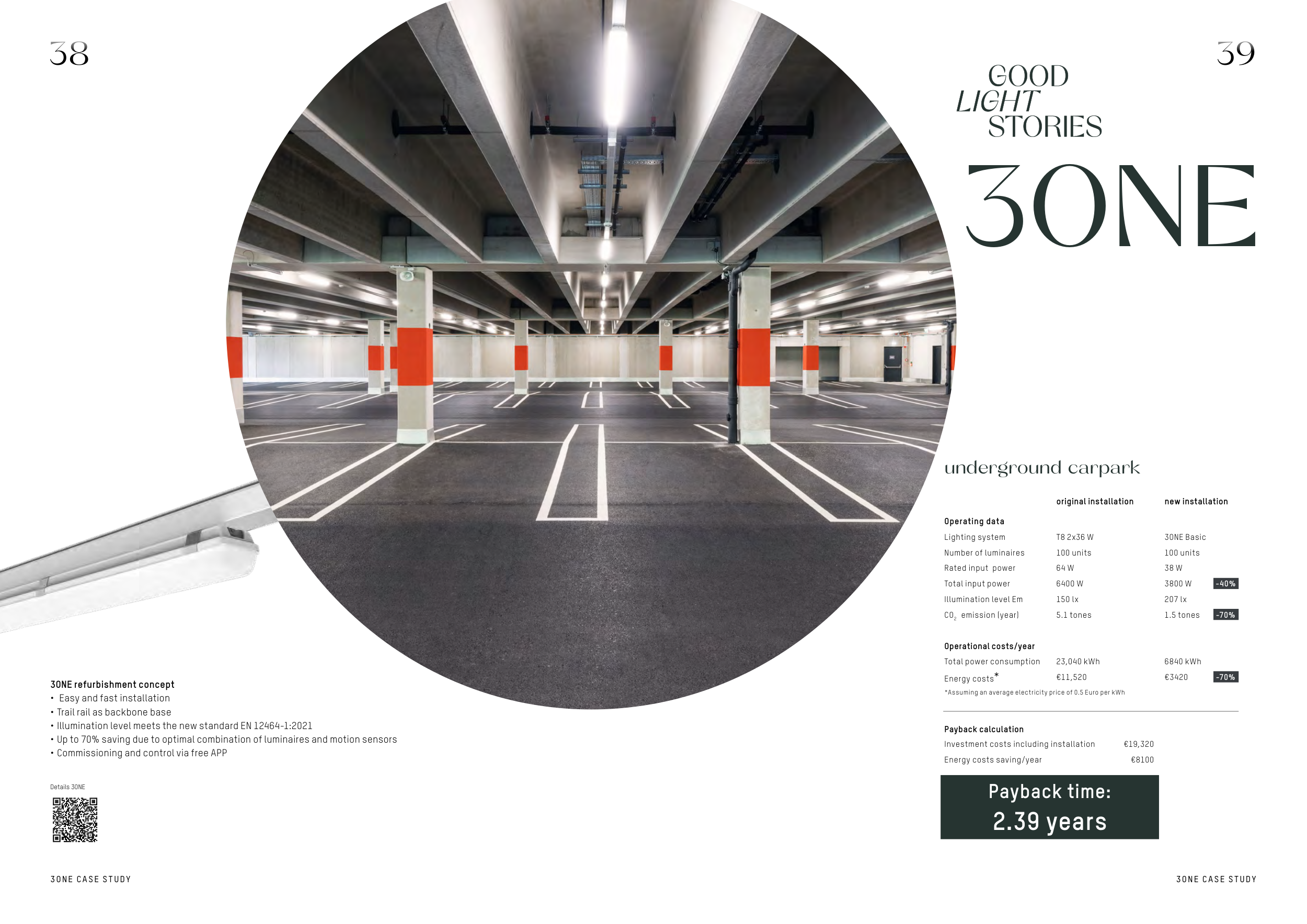 • Up to 70% saving due to optimal combination of luminaires and motion sensors