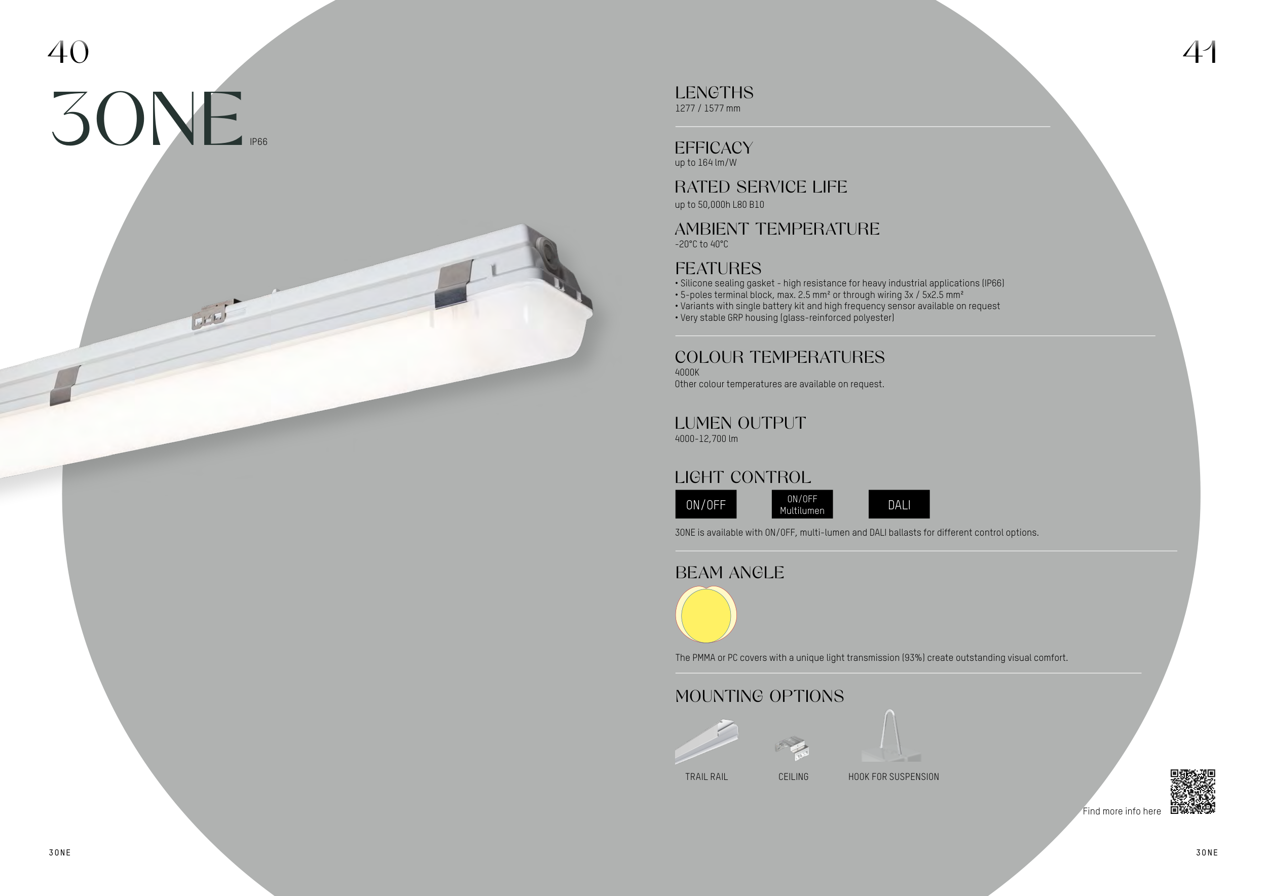 3ONE is available with ON/OFF, multi-lumen and DALI ballasts for different control options.