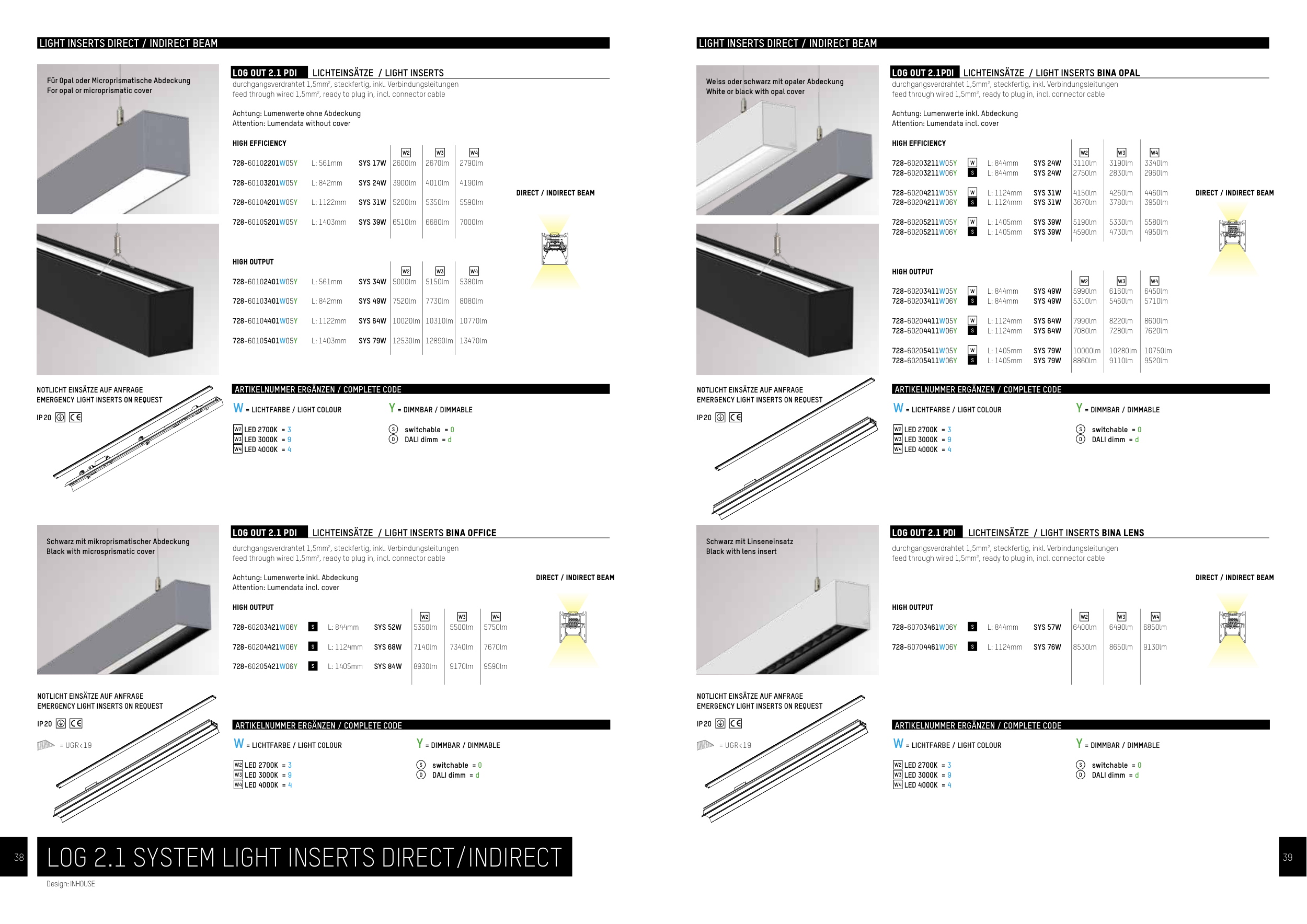 LOG 2.1 SYSTEM LIGHT INSERTS DIRECT/INDIRECT
