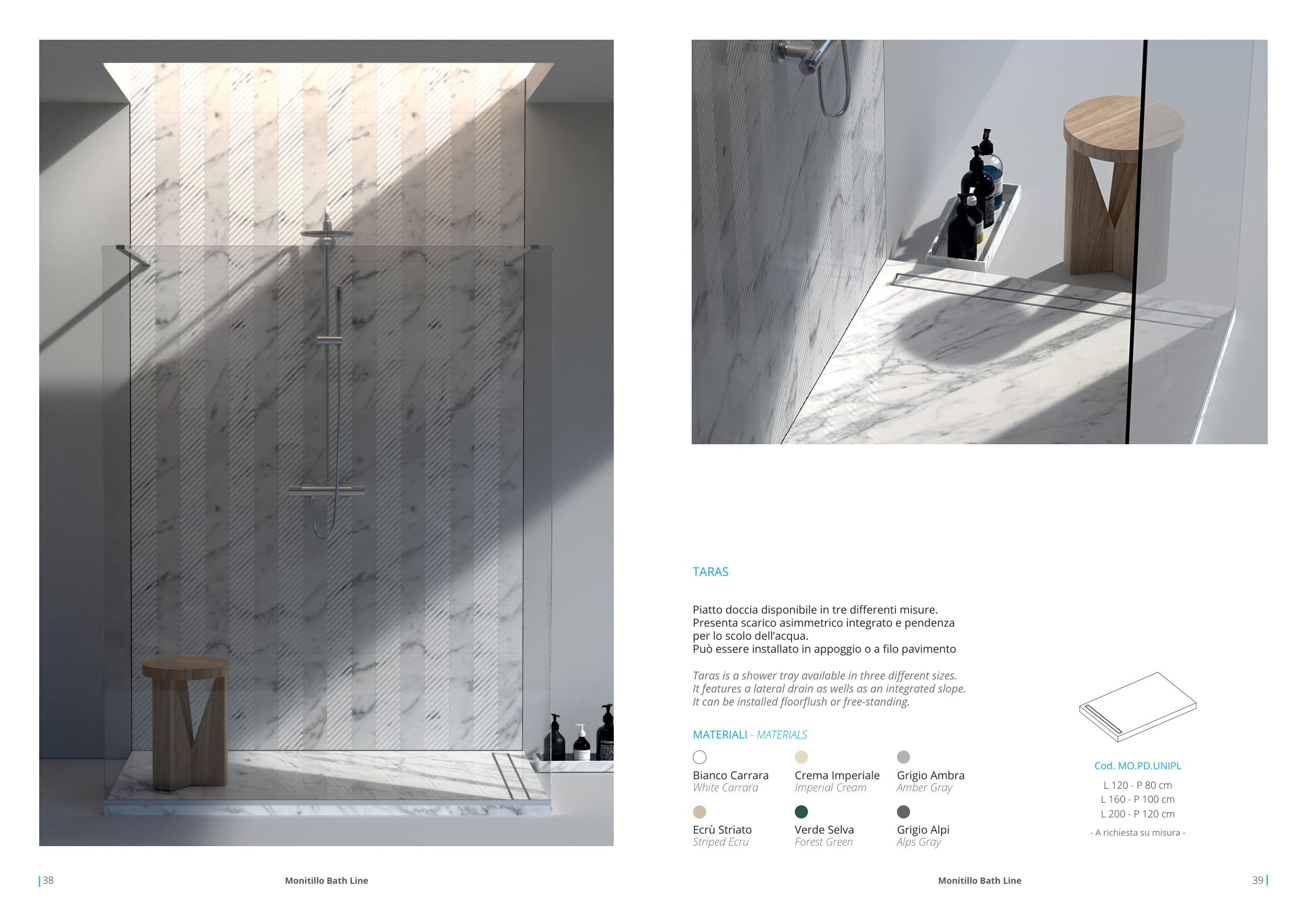 Taras is a shower tray available in three different sizes.