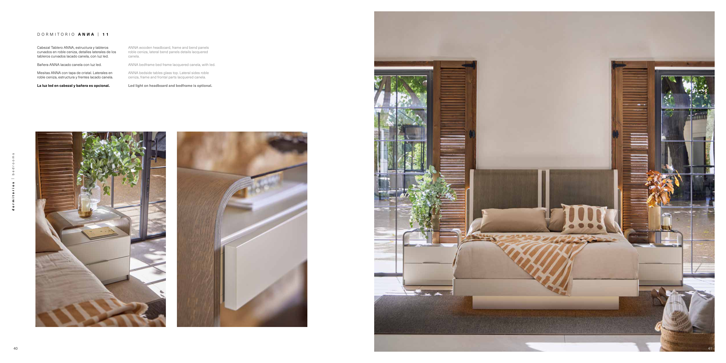 ANNA bedframe bed frame lacquered canela, with led.