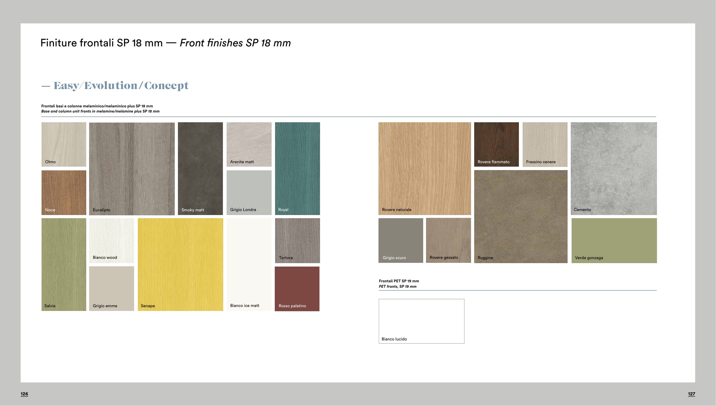 Finiture frontali SP 18 mm — Front finishes SP 18 mm