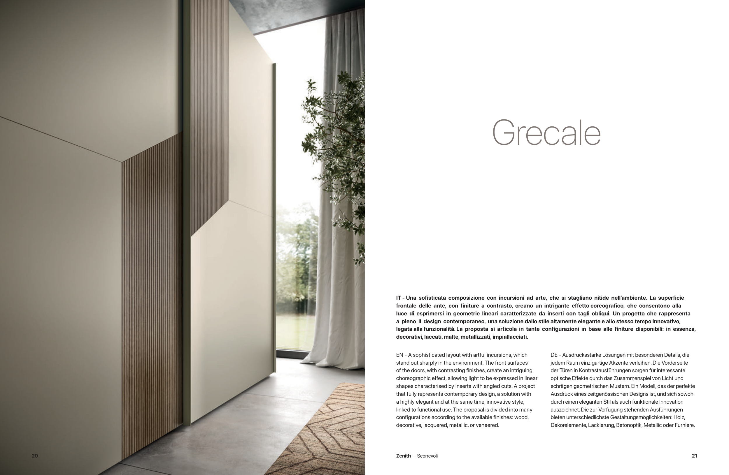 frontale delle ante, con finiture a contrasto, creano un intrigante effetto coreografico, che consentono alla