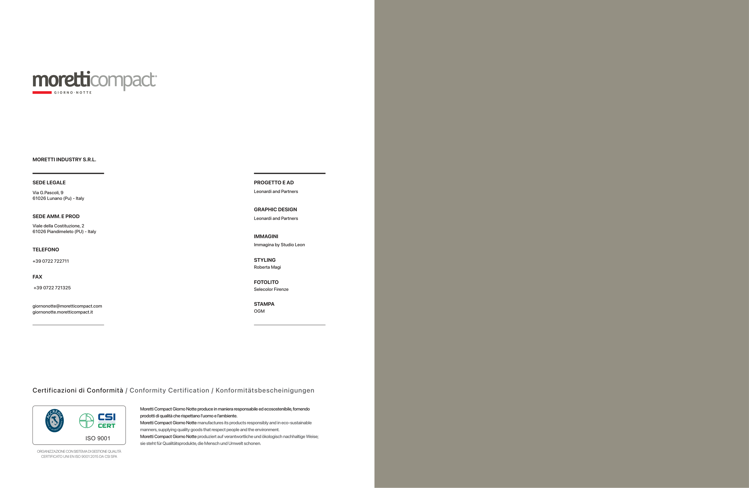 Moretti Compact Giorno Notte manufactures its products responsibly and in eco-sustainable