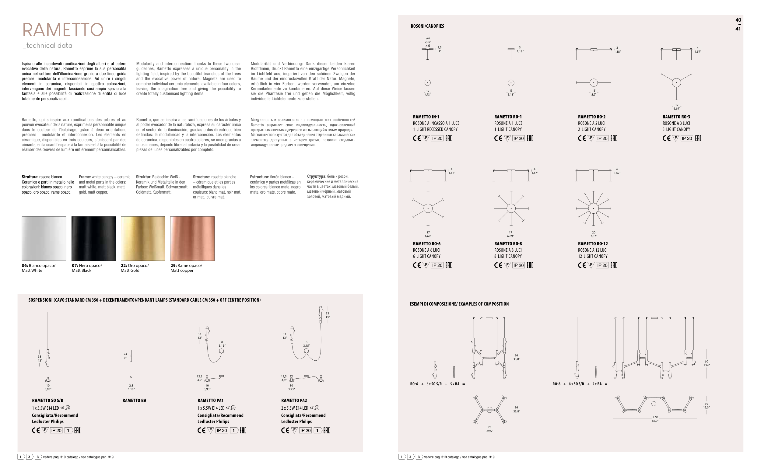 SOSPENSIONI (CAVO STANDARD CM 350 + DECENTRAMENTO)/PENDANT LAMPS (STANDARD CABLE CM 350 + OFF CENTRE POSITION)