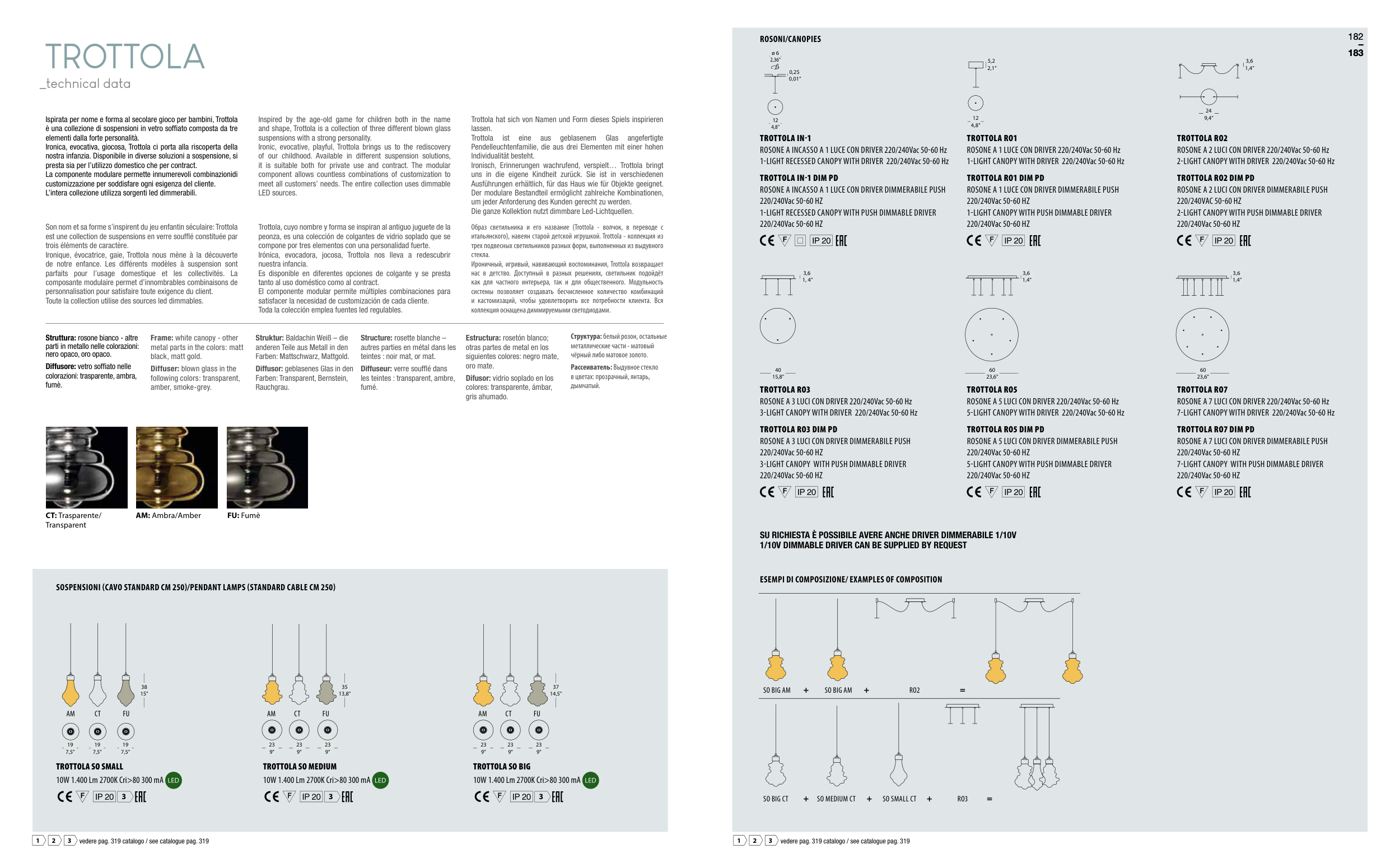 SOSPENSIONI (CAVO STANDARD CM 250)/PENDANT LAMPS (STANDARD CABLE CM 250)
