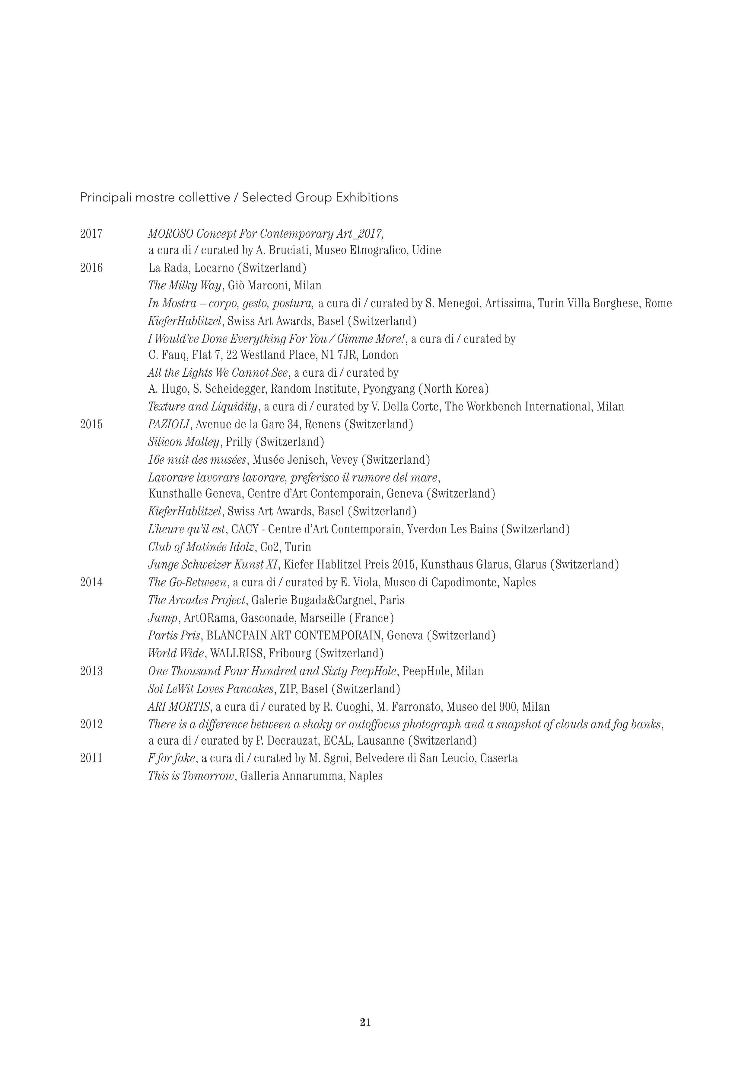 Principali mostre collettive / Selected Group Exhibitions