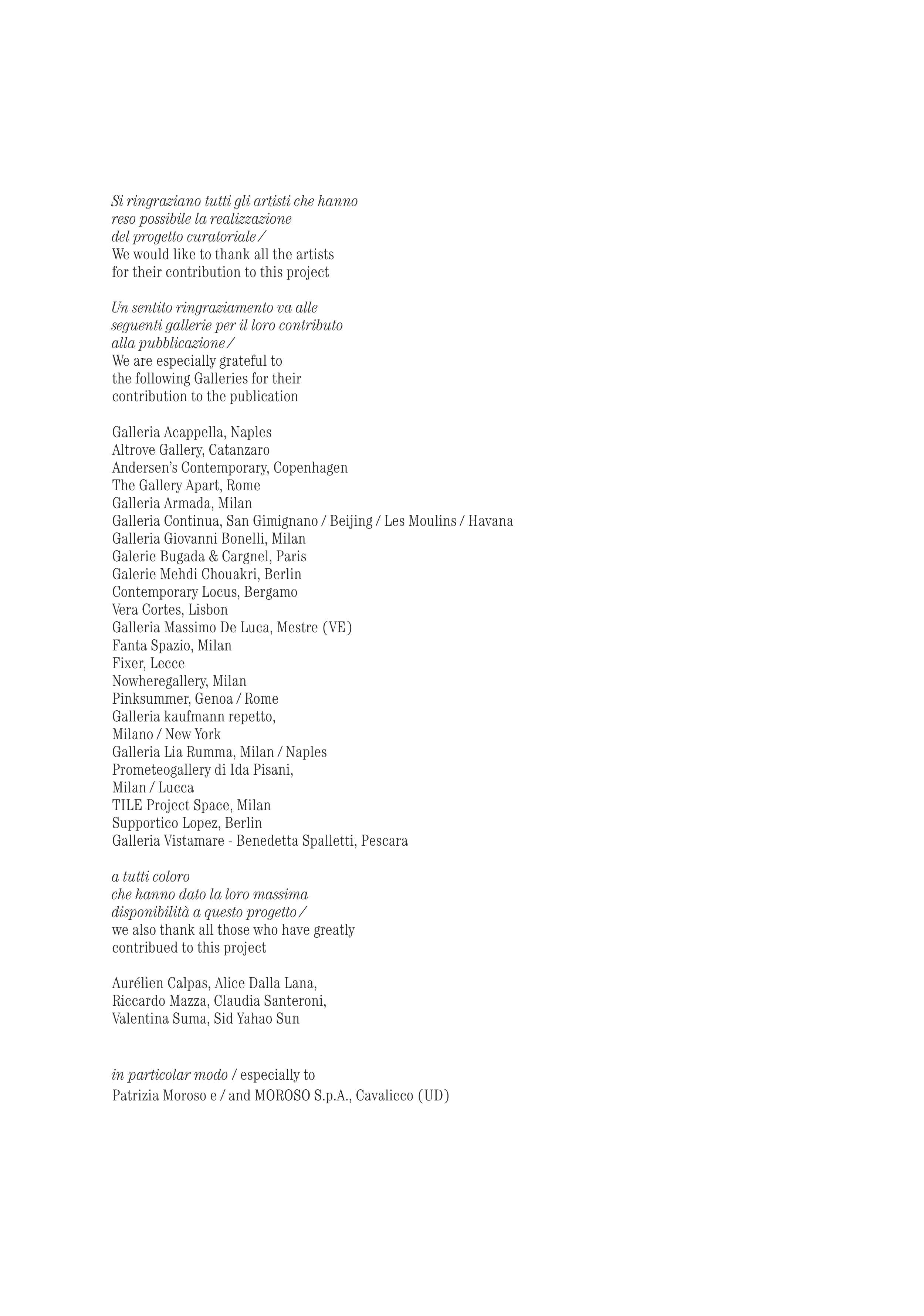 Si ringraziano tutti gli artisti che hanno