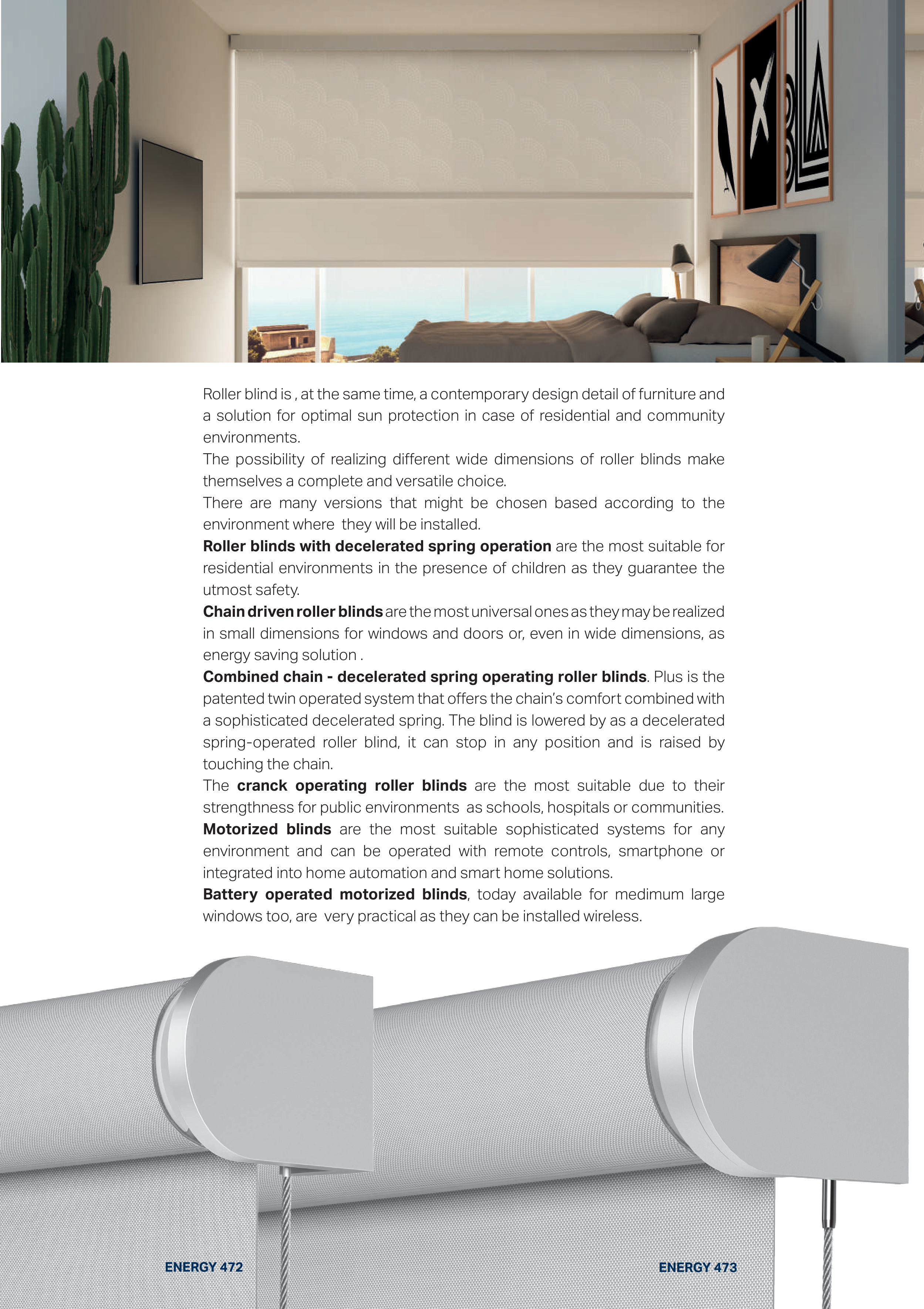 Combined chain - decelerated spring operating roller blinds. Plus is the