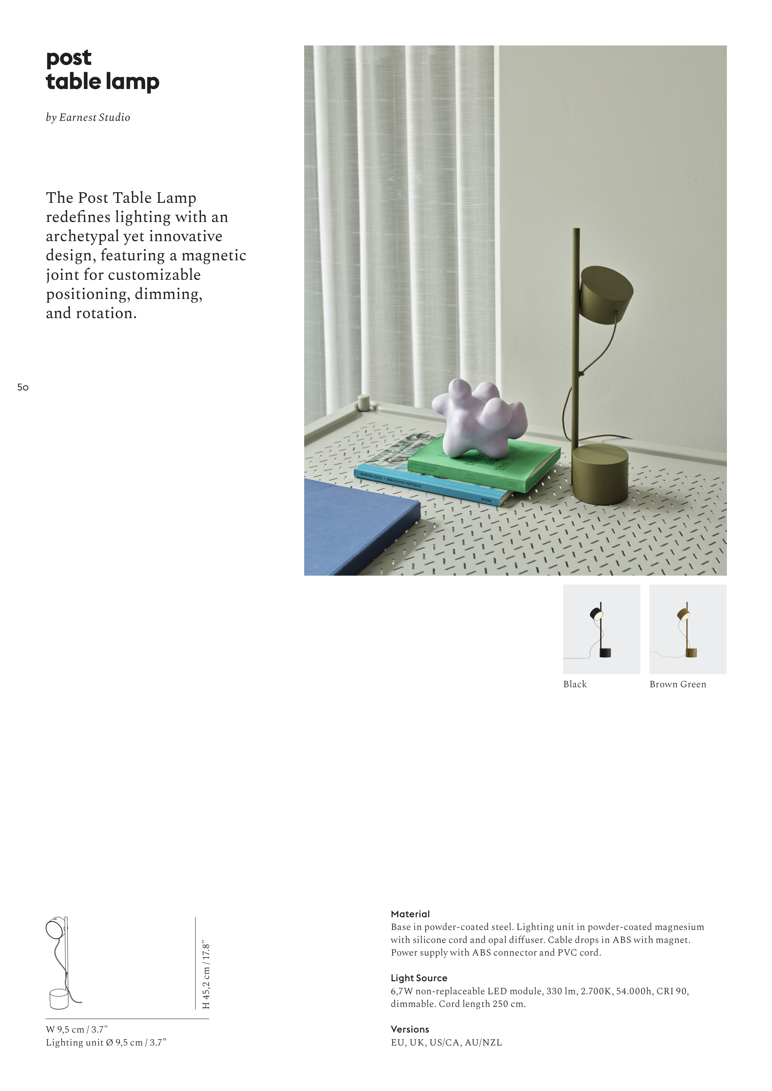 Base in powder-coated steel. Lighting unit in powder-coated magnesium