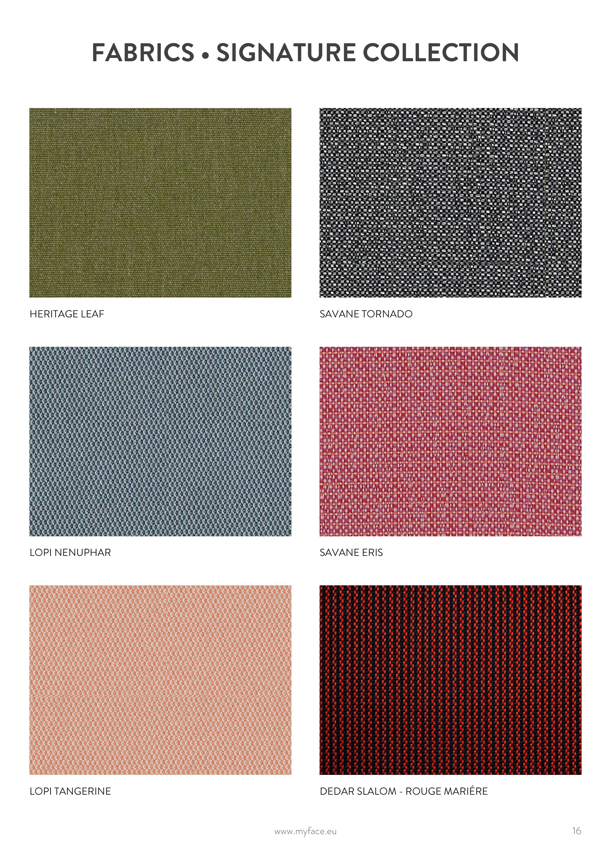 Catalogue Myface: Finishes and Fabrics,