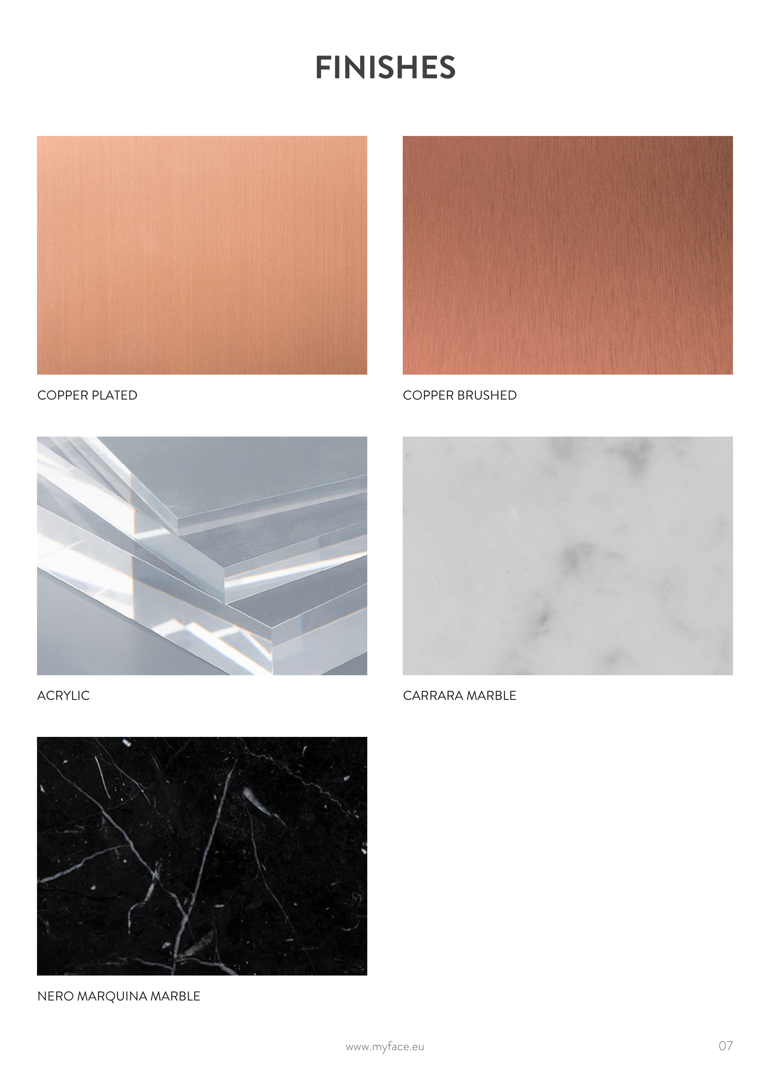Catalogue Myface: Finishes and Fabrics,